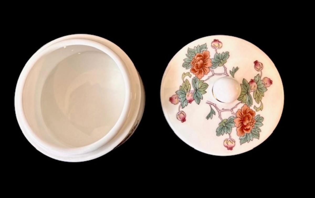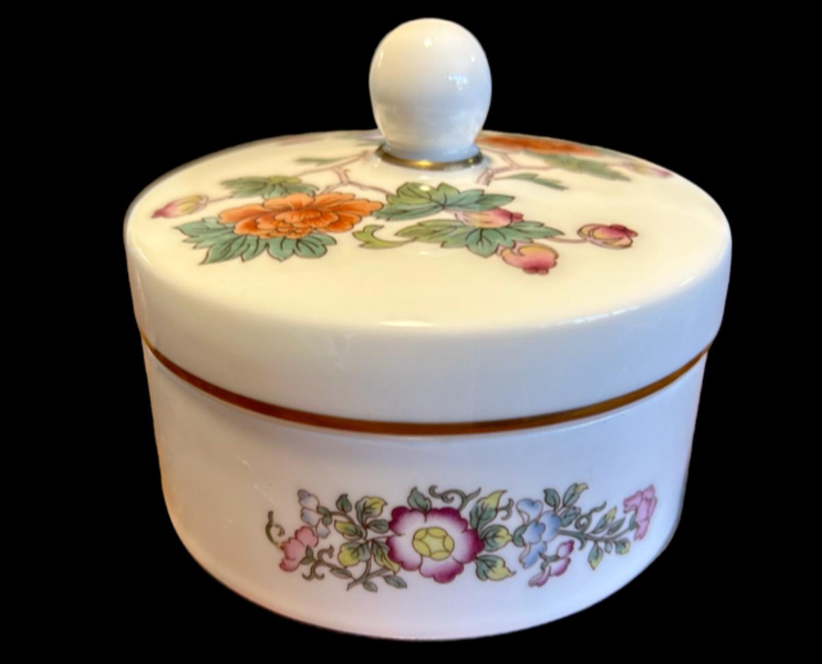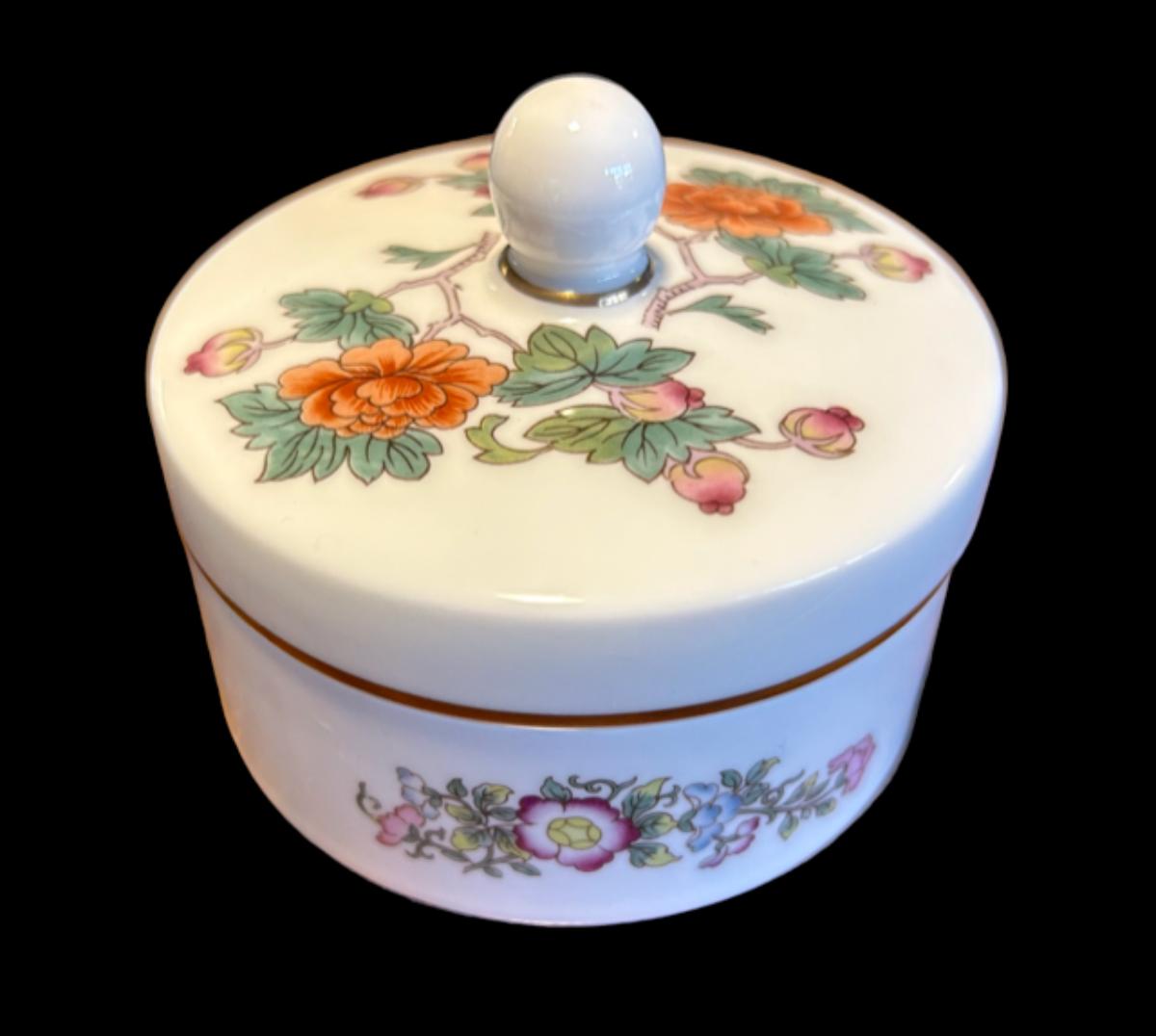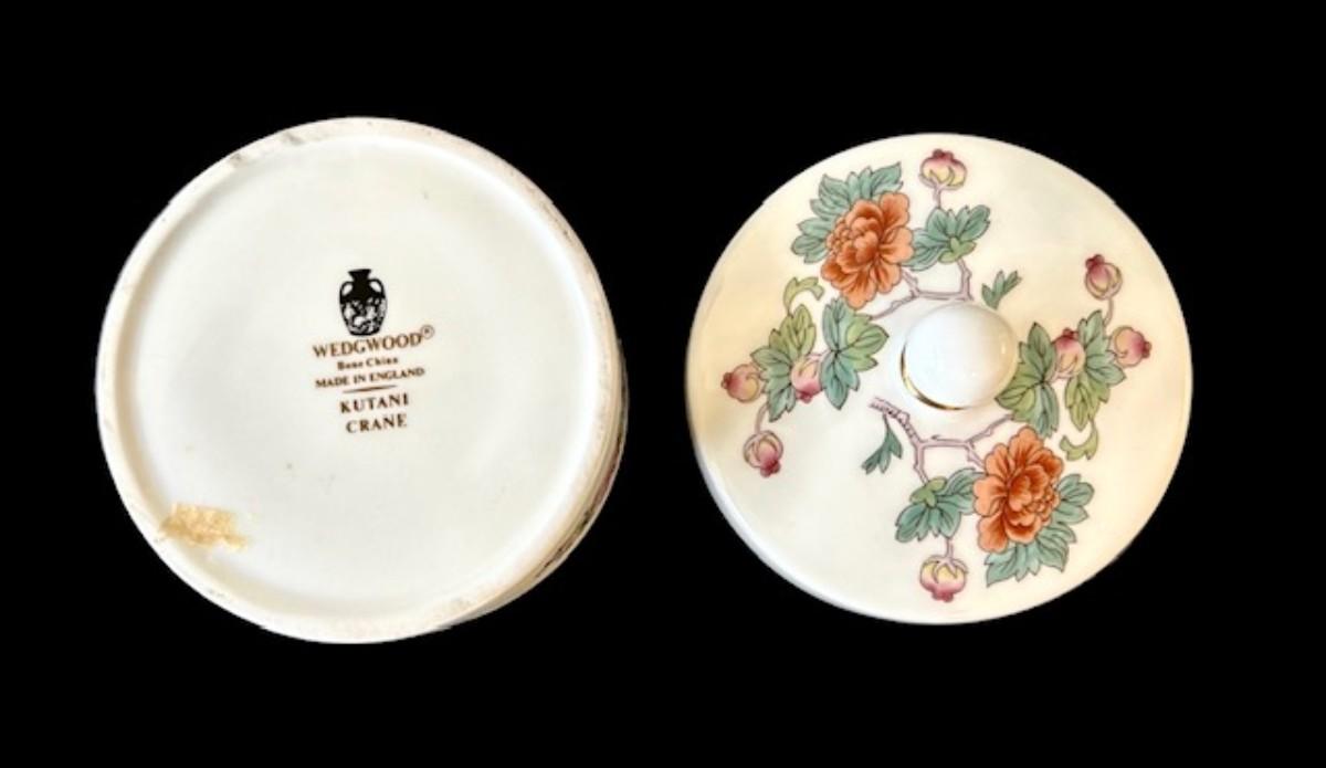 Wedgewood bone china Kutani Crane round lidded trinket box. Excellent condition, no chips or flaws.