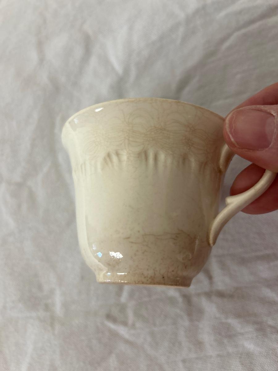 Eleven piece four place setting of this lovely Queensware China Set with many extra pieces. There are totals of the following; eight 11” dinner plates, eight 10” plates, eight 8.5” plates, eight 6” plates, seven 8” soup bowl, eleven 5” saucers, four deep rimmed saucers, four tea cup saucers, seven tea cups and eight small tea cups. There are no chips in this set but there is crazing throughout but no real staining except for one tea cup. See last four pix for some examples. Shipping available.