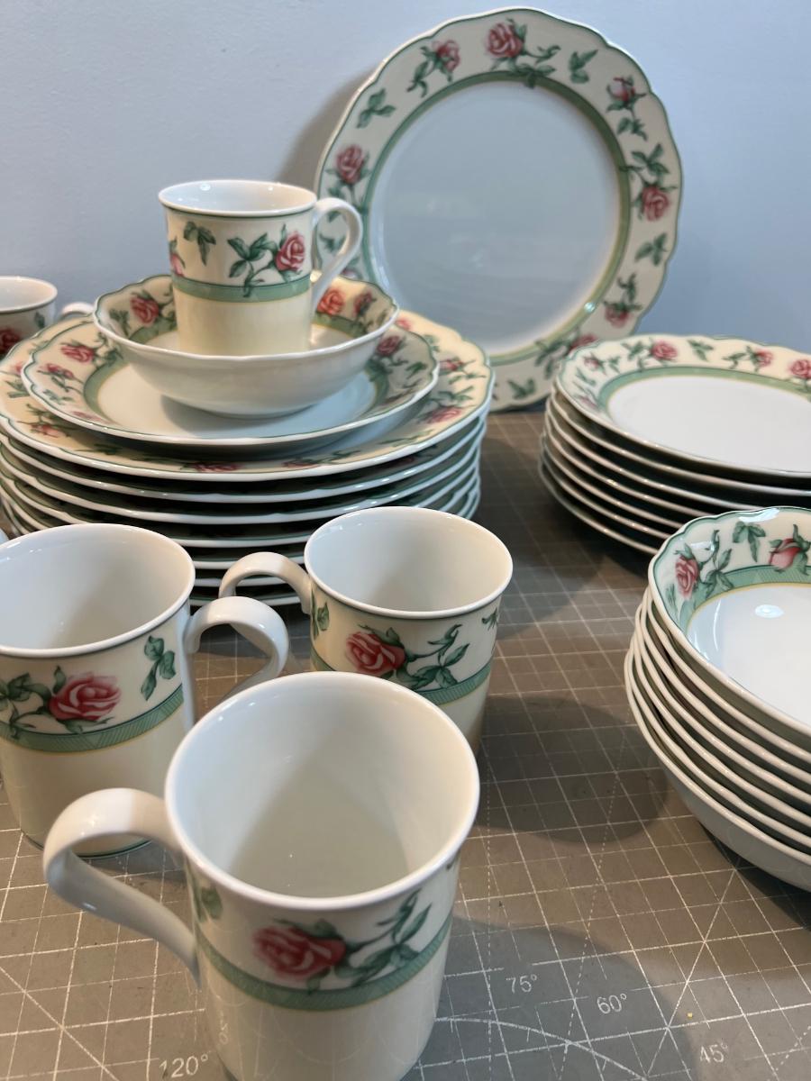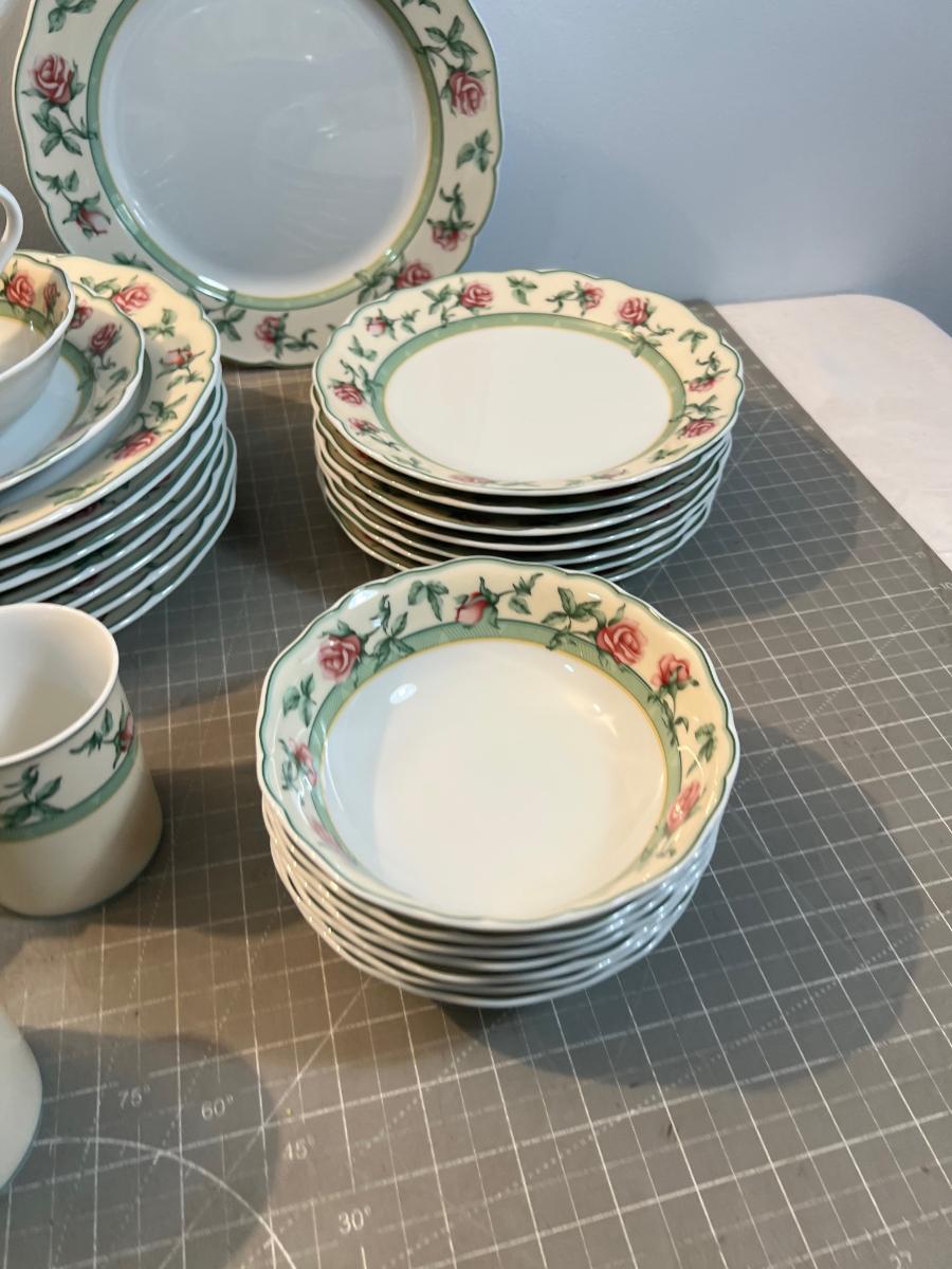 LOVELY! Service for 8. Good Condition. Its Wedgewood. Very Nice/Please bring papers, boxes or bags.
