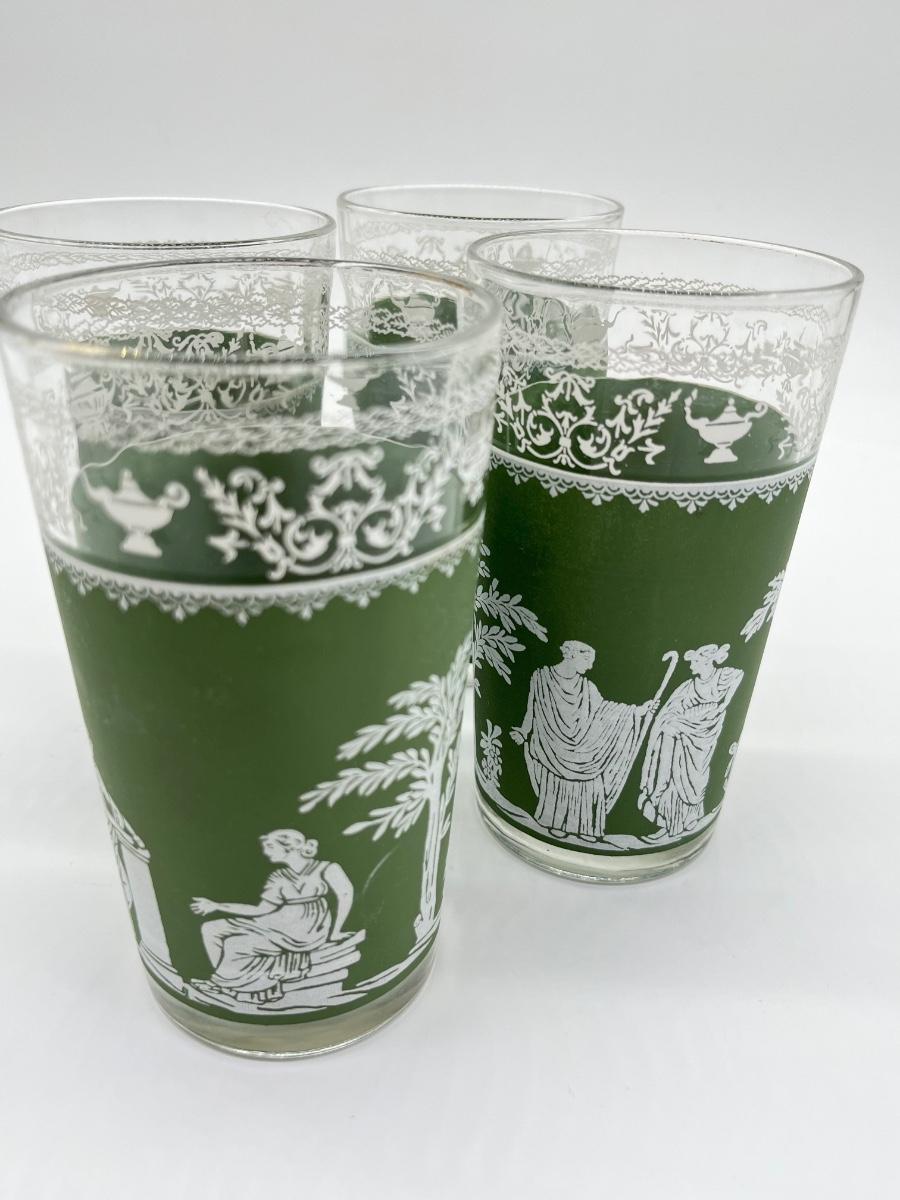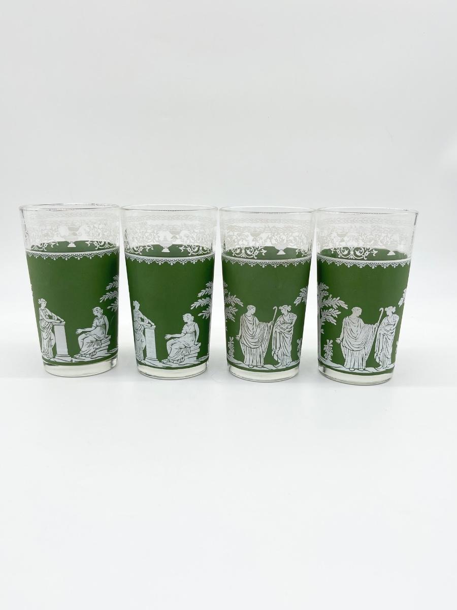 WEDGEWOOD ~ Jeannette ~ Jasperware Green Greek Set Of Four (4) Tumbles