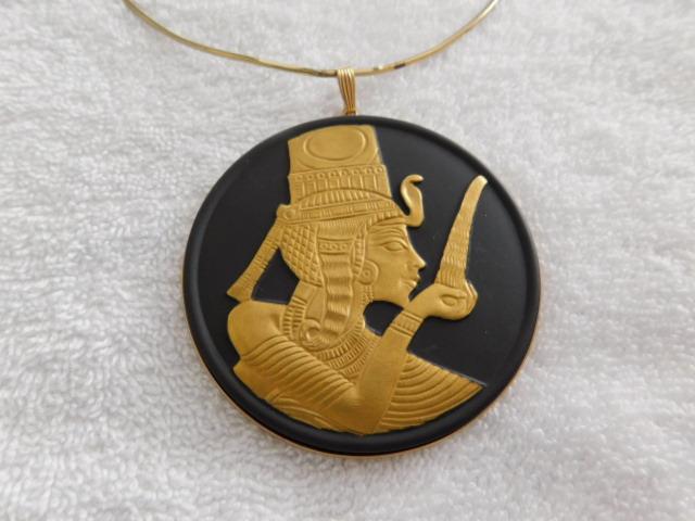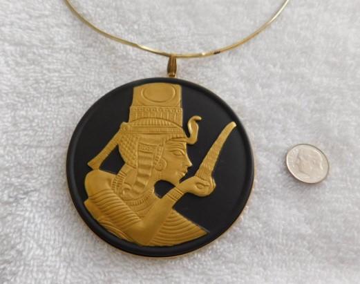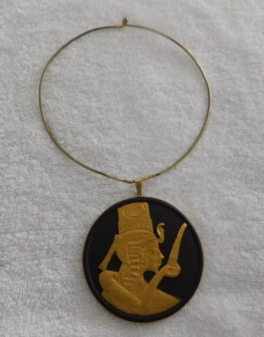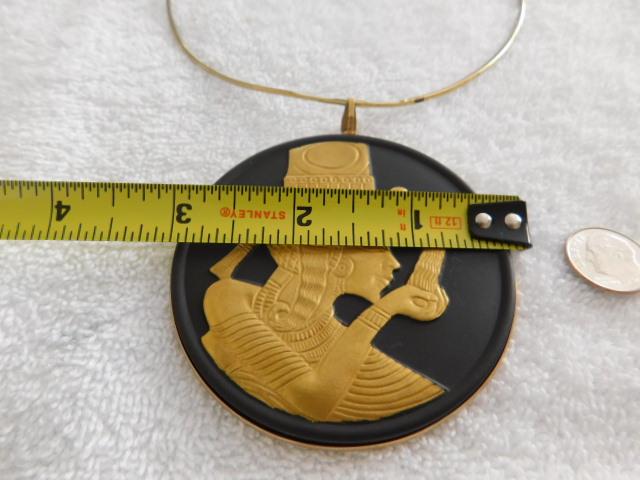 Wedgewood King Tut 12k Gold Plate in Relief on Black Jasper Pendant Medallion 3" rare item hanging on 5" diameter neck ring. Pendant in very nice condition