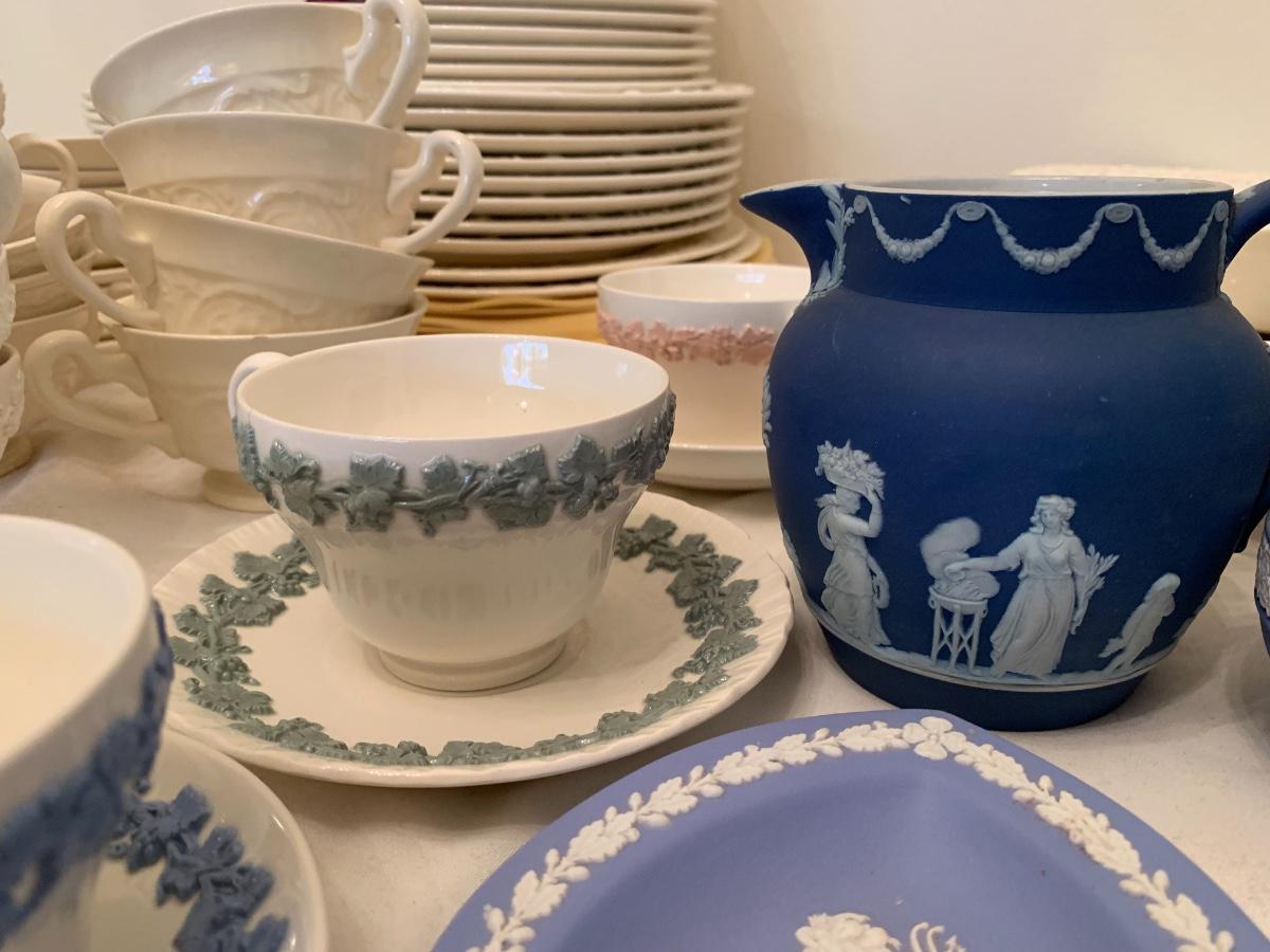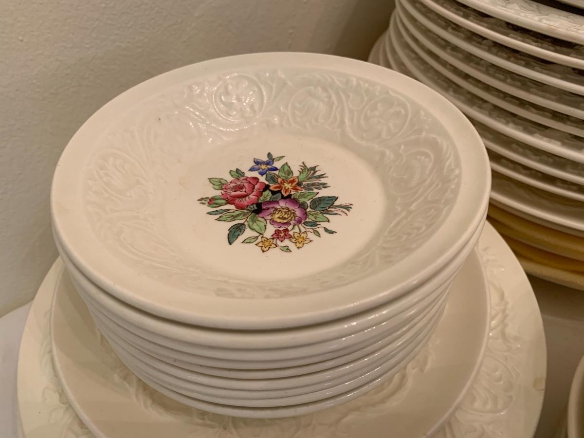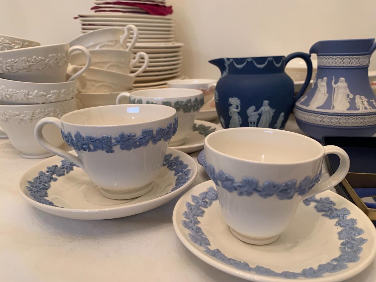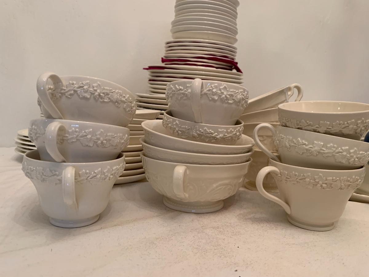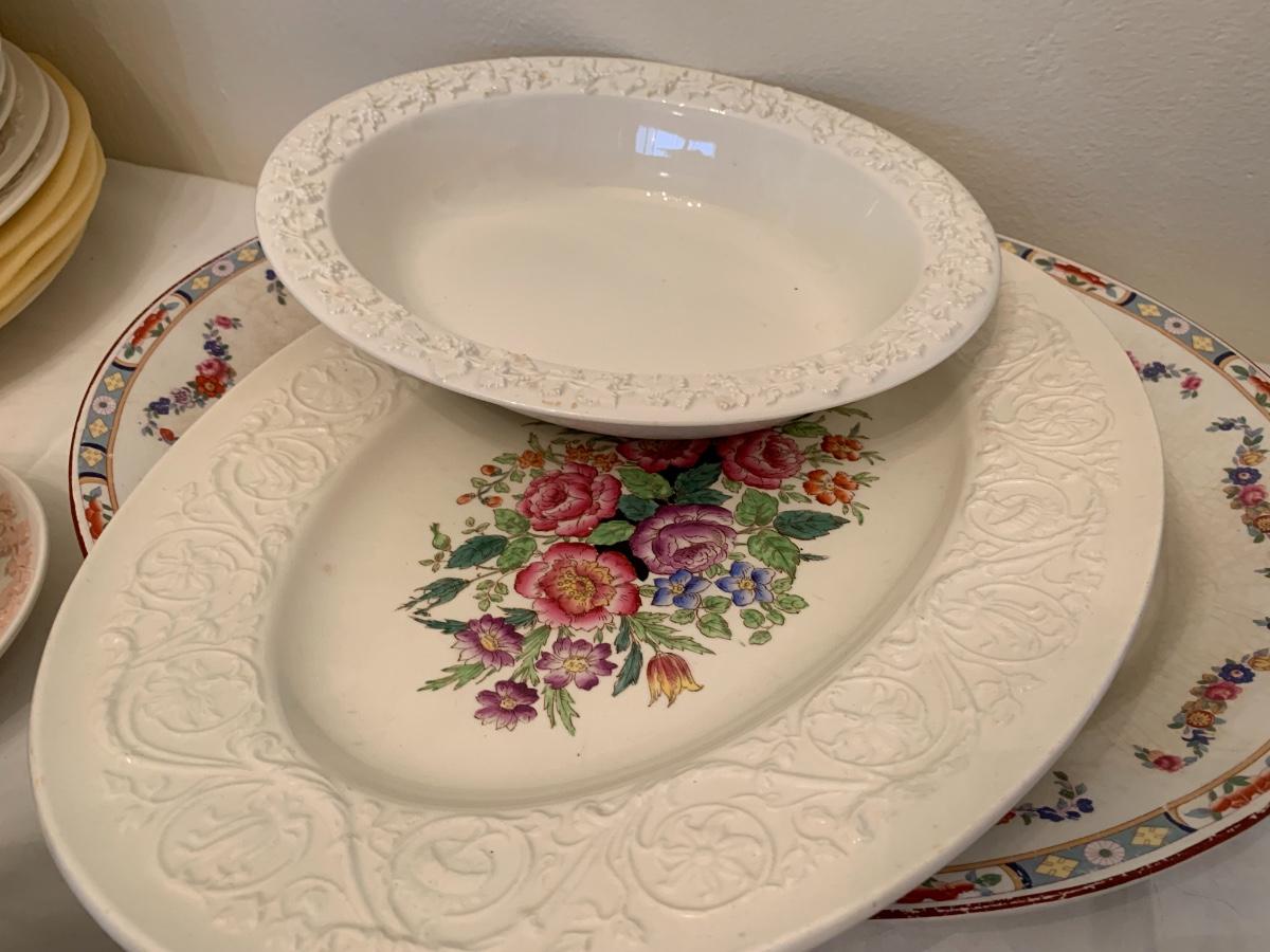 Large lot of various patterns of Wedgewood china. Serving pieces, tea cups, dishes set.