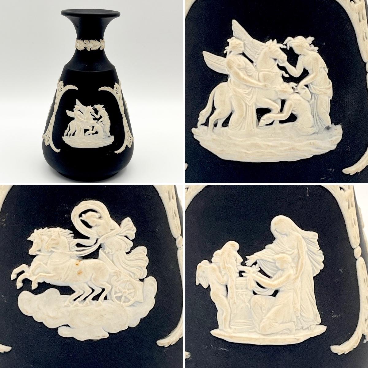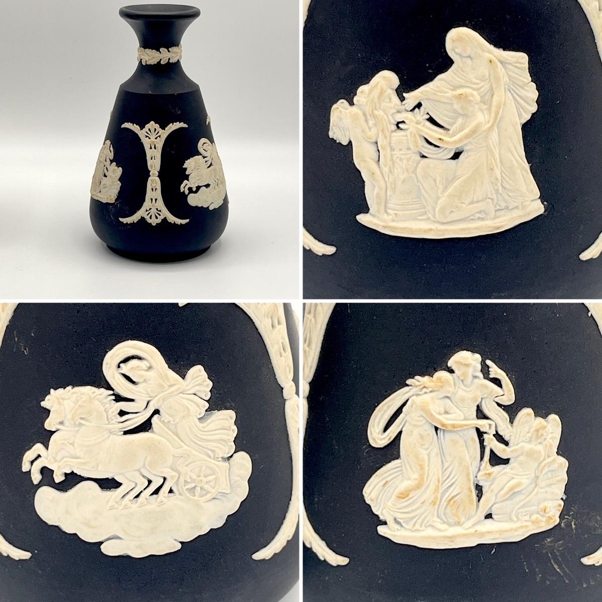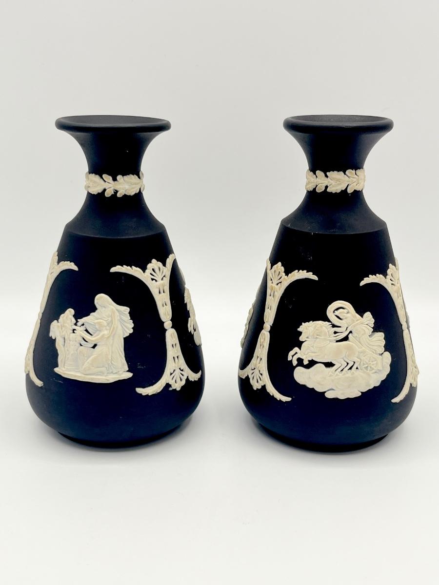 WEDGEWOOD ~ Pair (2) ~ Cream Color On Black Jasperware Bud Vases
