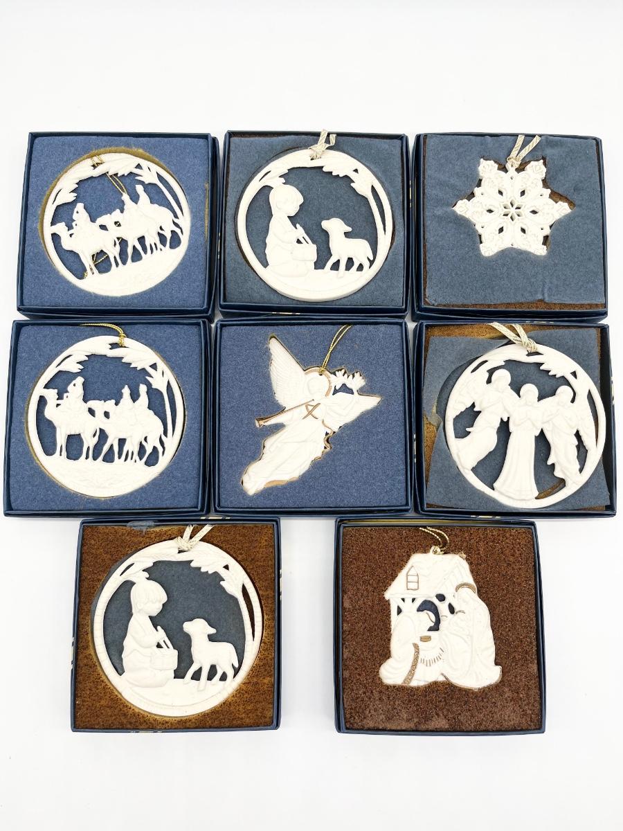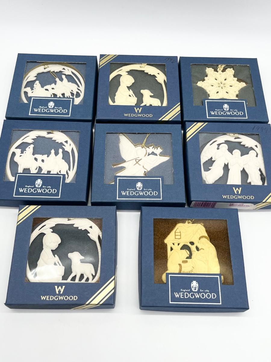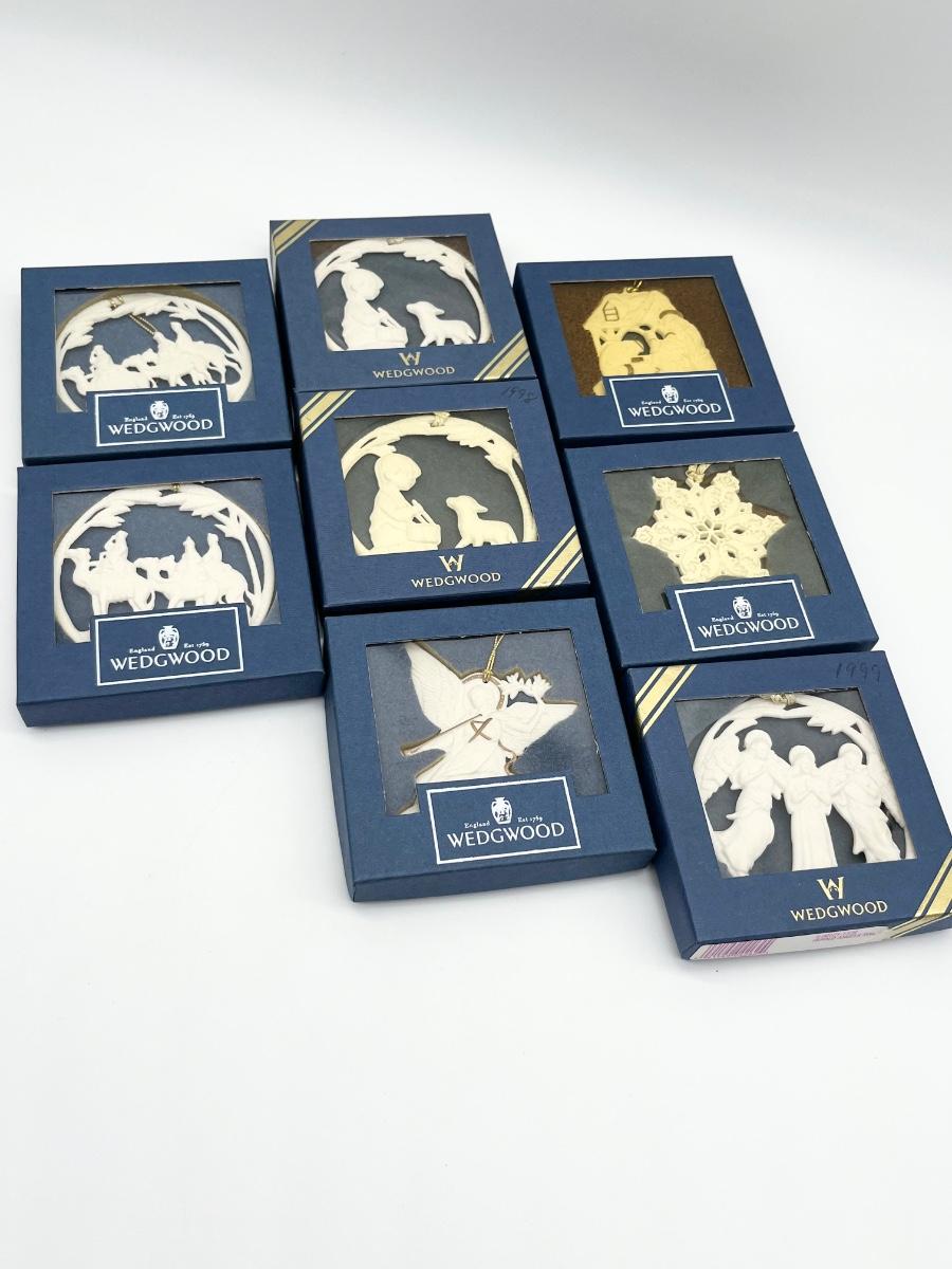 WEDGEWOOD ~ Set Of Eight (8) White Jasper Christmas Ornaments
