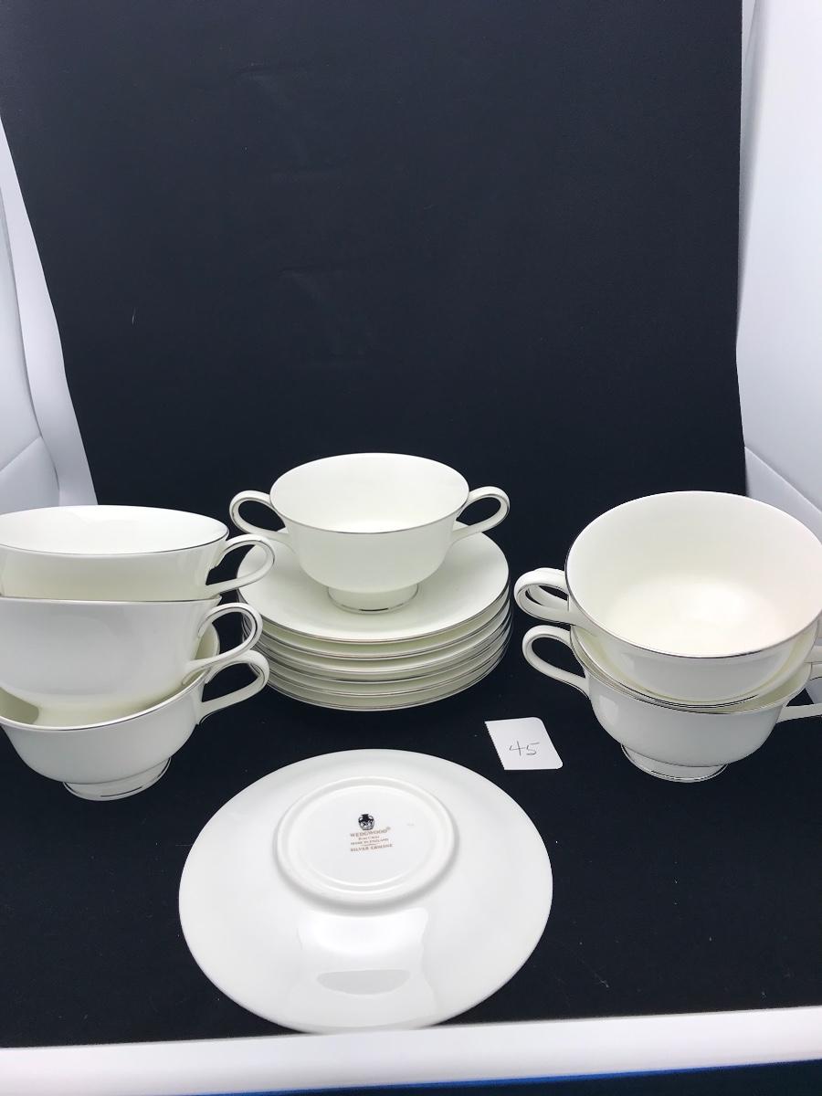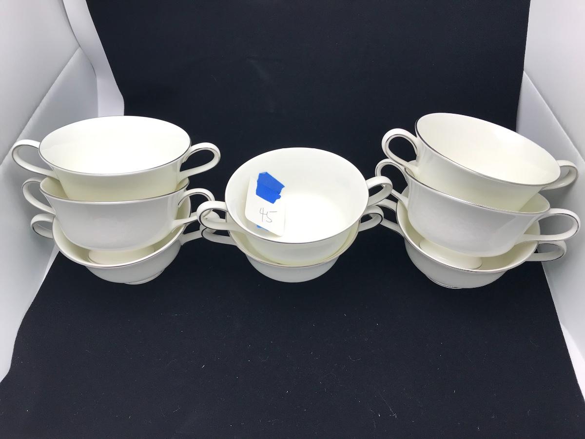 Wedgewood Silver Ermine Two Handle Soups and Plates