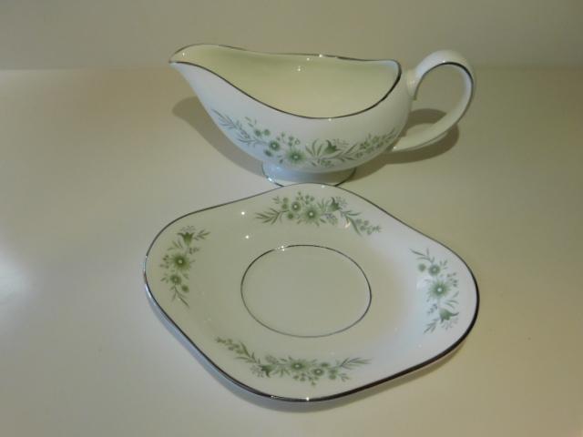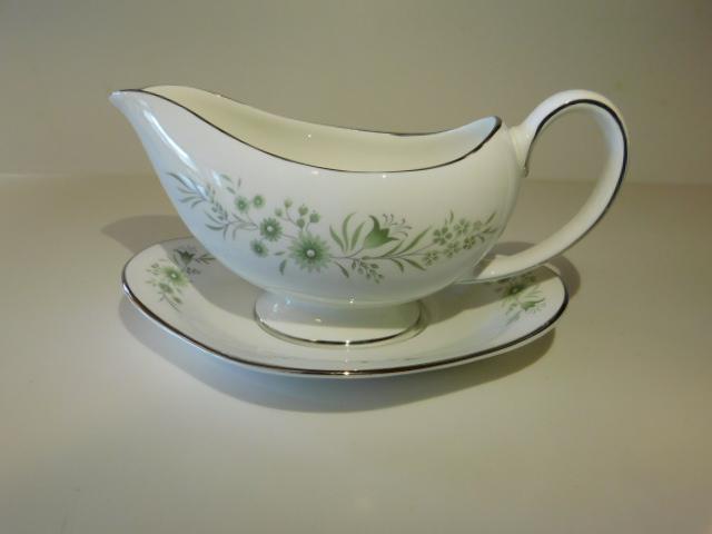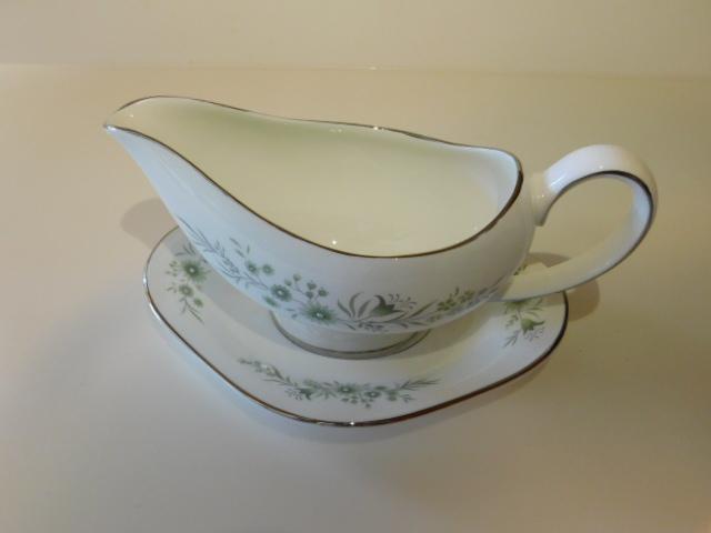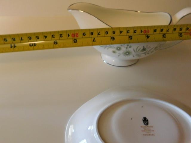 Wedgewood Westbury Platinum Trim Gravy Boat with Drip Plate 8"