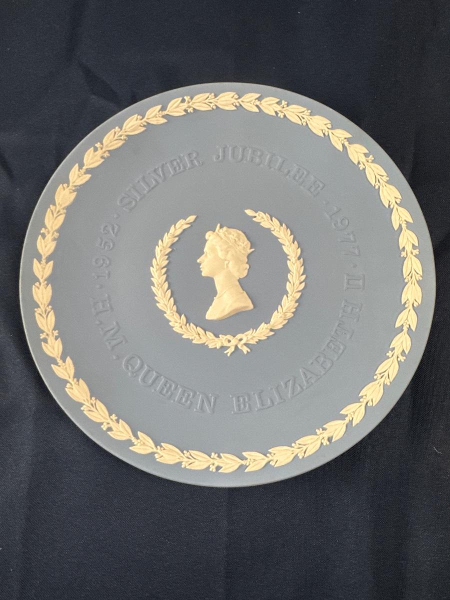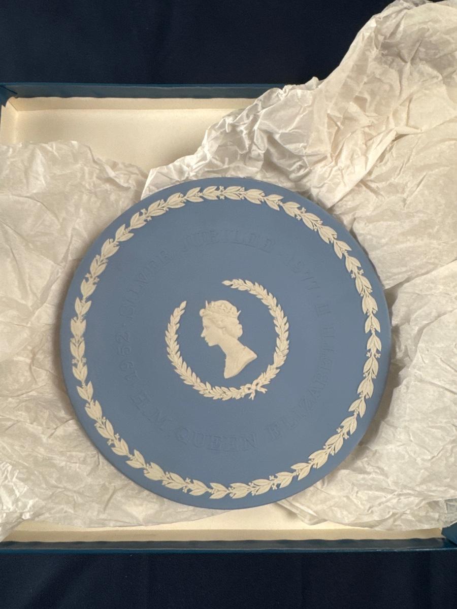 Wedgwood 1977 Silver Jubilee Blue Jasperware Plate Queen Elizabeth II 8”
