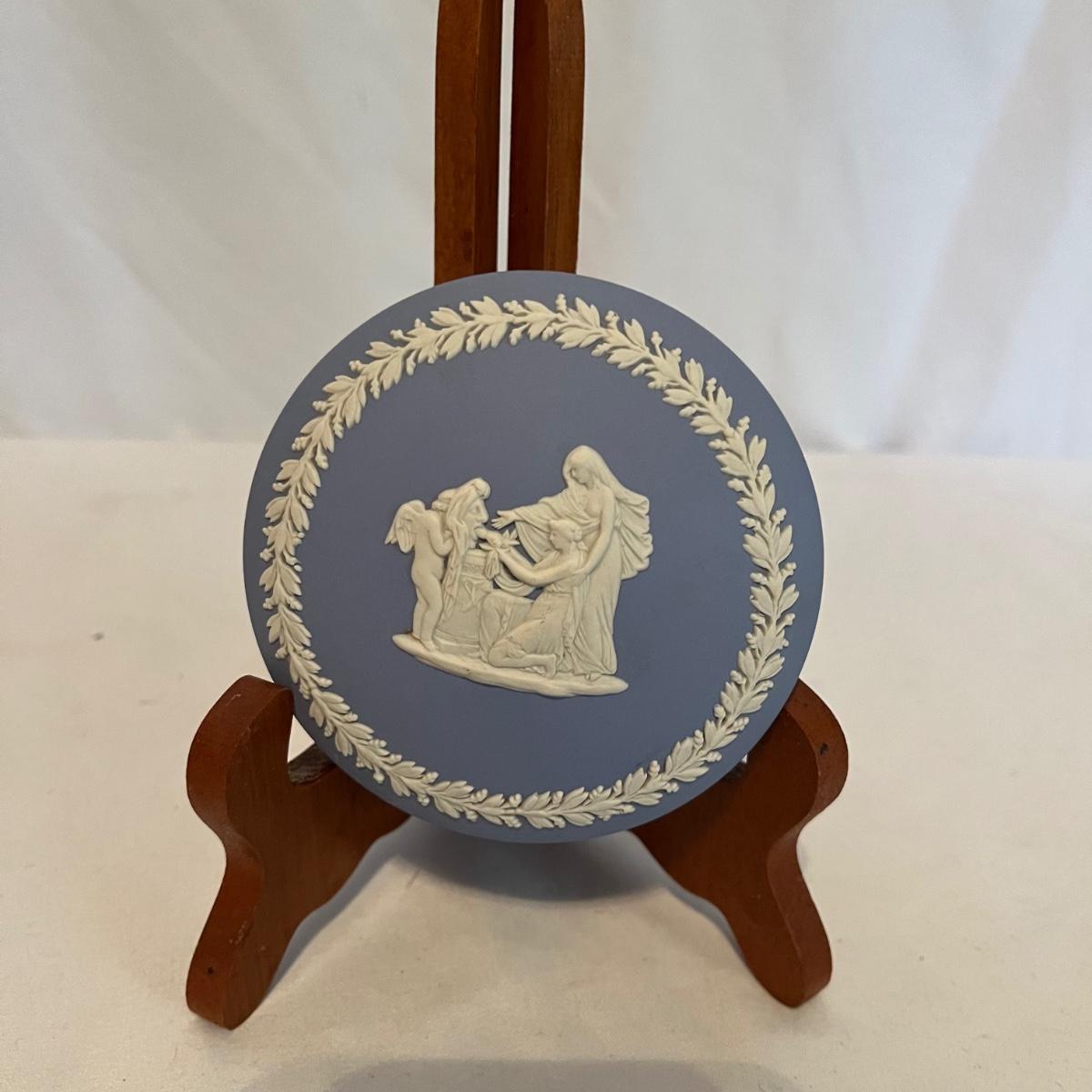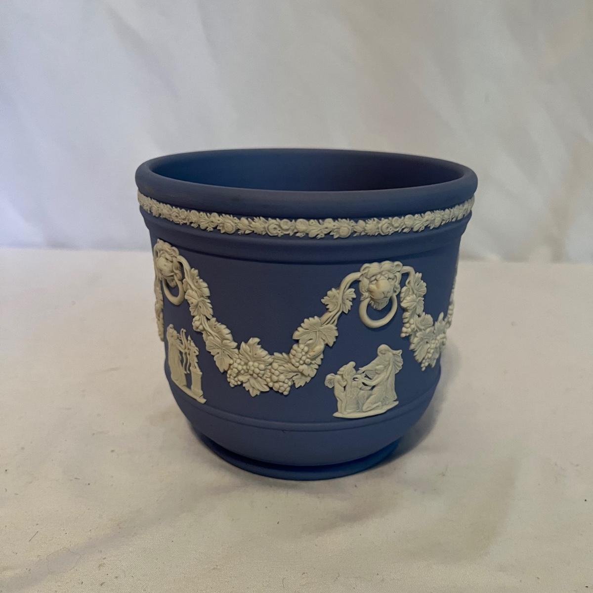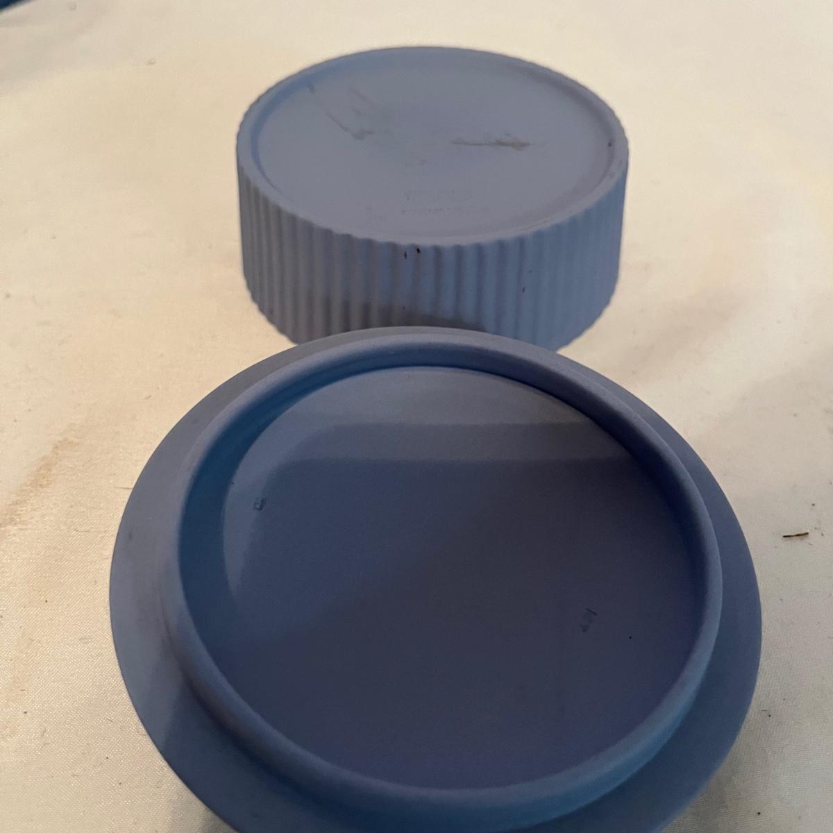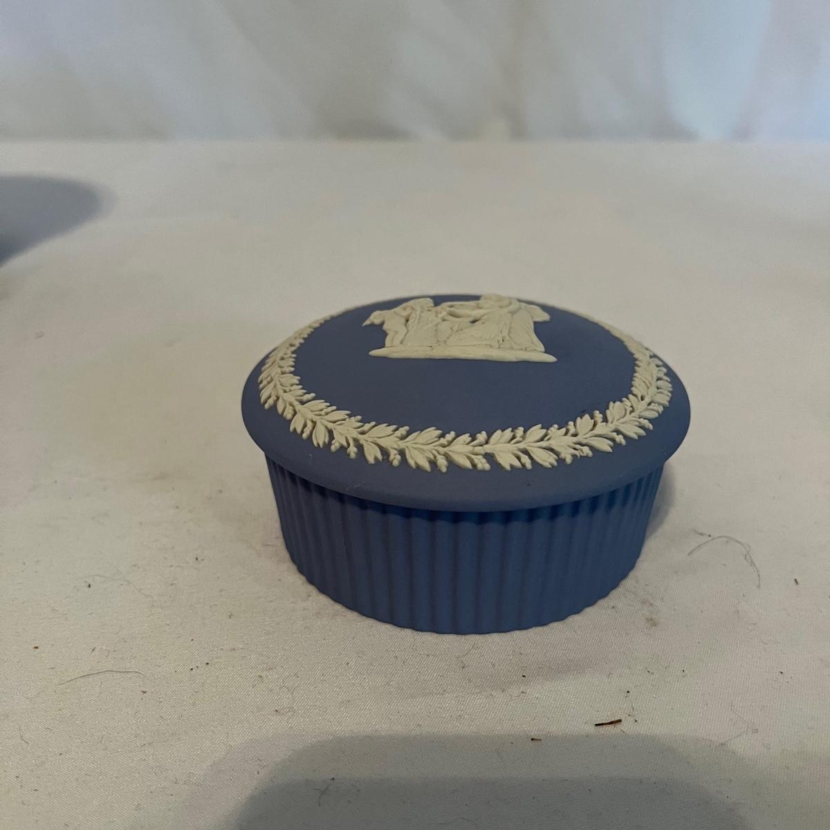 Lot includes a bowl, heart shaped dish and a lidded container. All items are marked Wedgwood Made in England. Bowl measures 5”D x 4.5” tall.