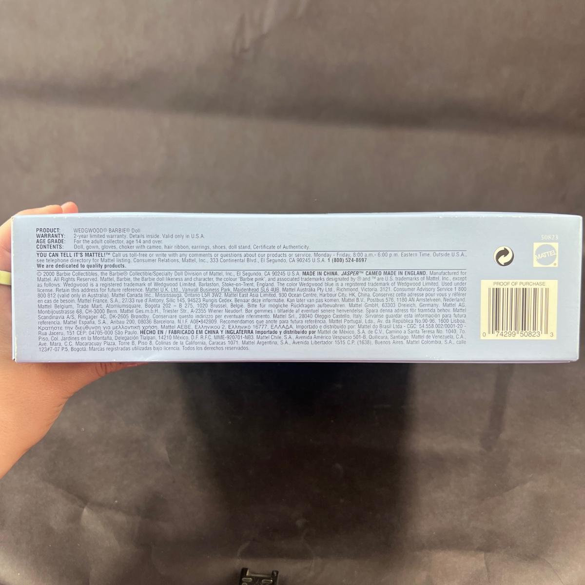 This Barbie doll was created to honor the Wedgwood pottery called "Jasper". Even barbie's necklace is an authentic piece of Wedgwood pottery - a nice cameo! This doll was produced by Mattel in 1999. If both dolls are purchased by the same person we do have the original shipping box that fits the pair (Lots 186 & 187). This doll has not been out of its box. **|** Please see photos for details and condition. ::: Shipping is available on this lot. If you require shipping you must let us know at the close of the auction. We will coordinate with you after the item has been won. Shipping fees will include insurance up to or exceeding the value of all items being mailed. If you have any questions regarding this lot please contact the auctioneer either via this website, by direct email or by phone. PICK UP TIMES and other important information can be found in the TERMS and DESCRIPTION of the auction. Please take a look for pertinent information. Thanks!