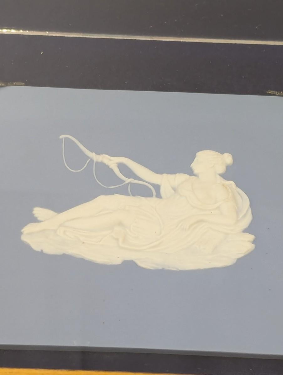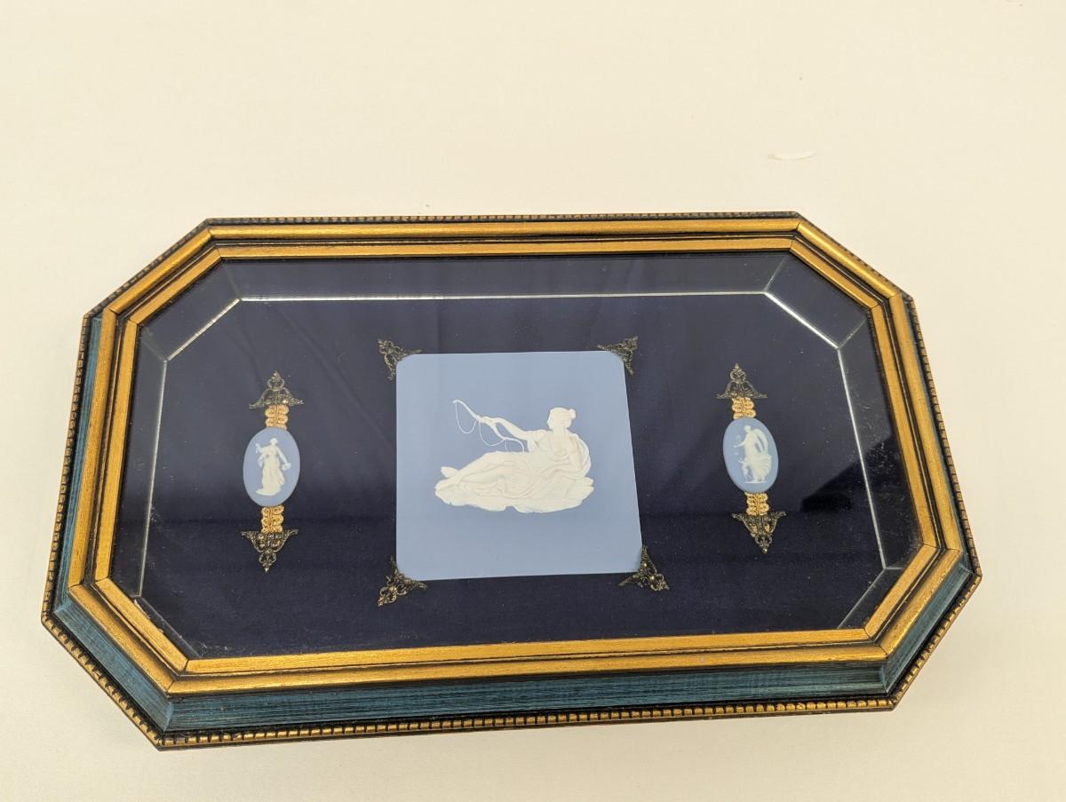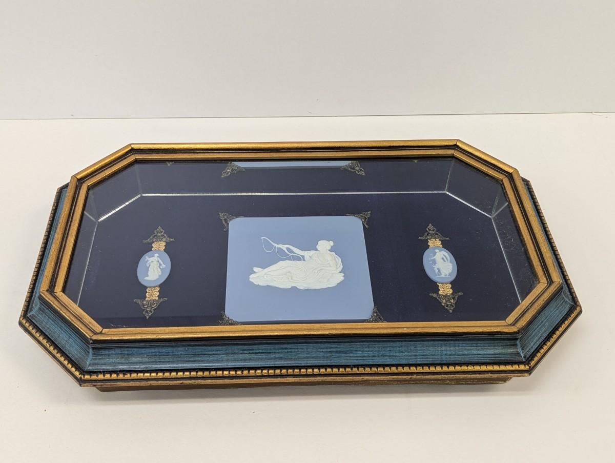 Wedgwood Blue Jasperware Plaques Goddess Diana In Mirror Shadow Box