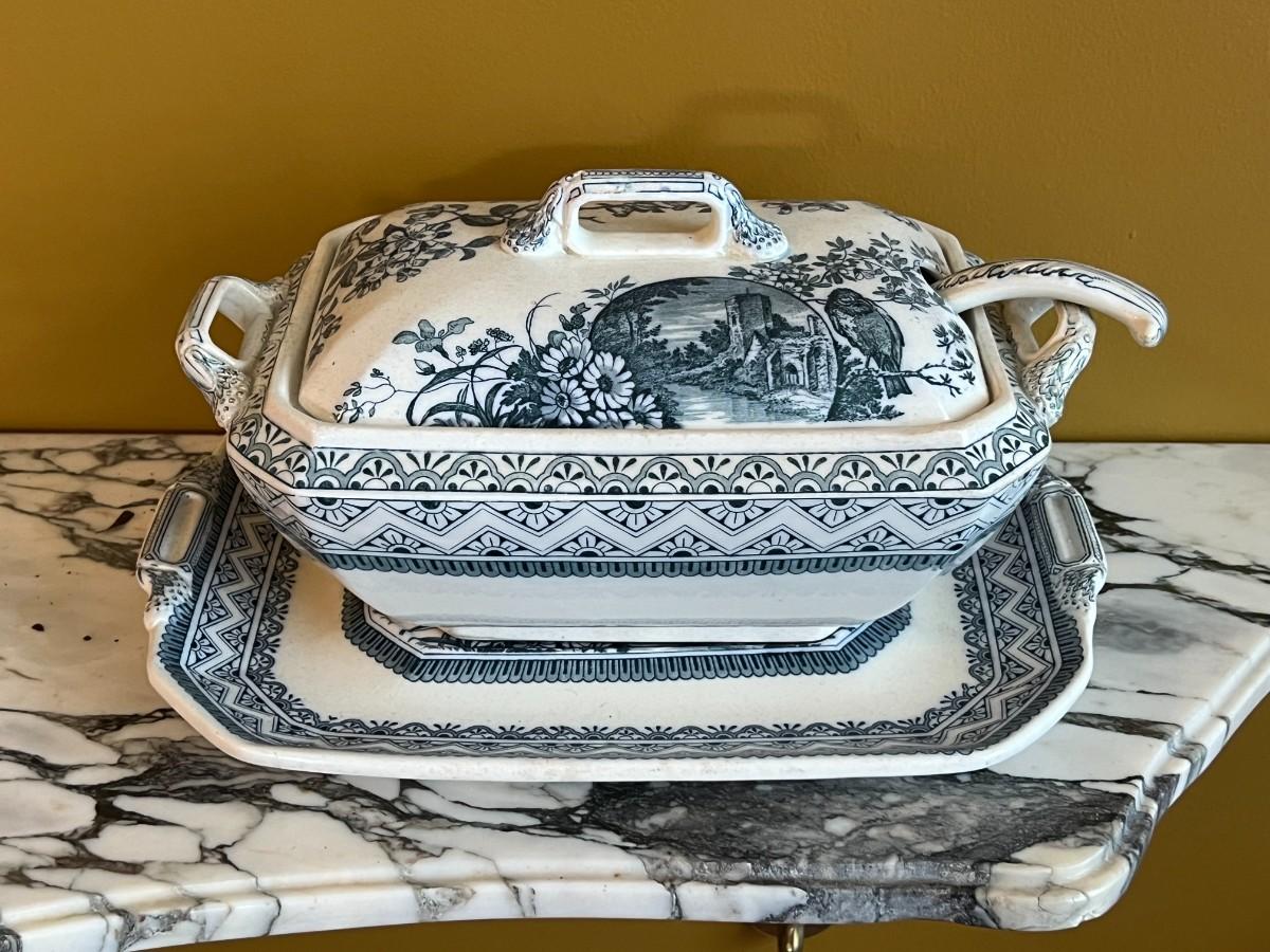 Wedgwood Blue Transfer Soup Tureen with Under Plate