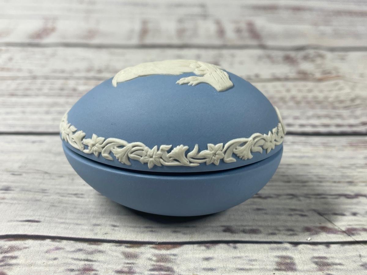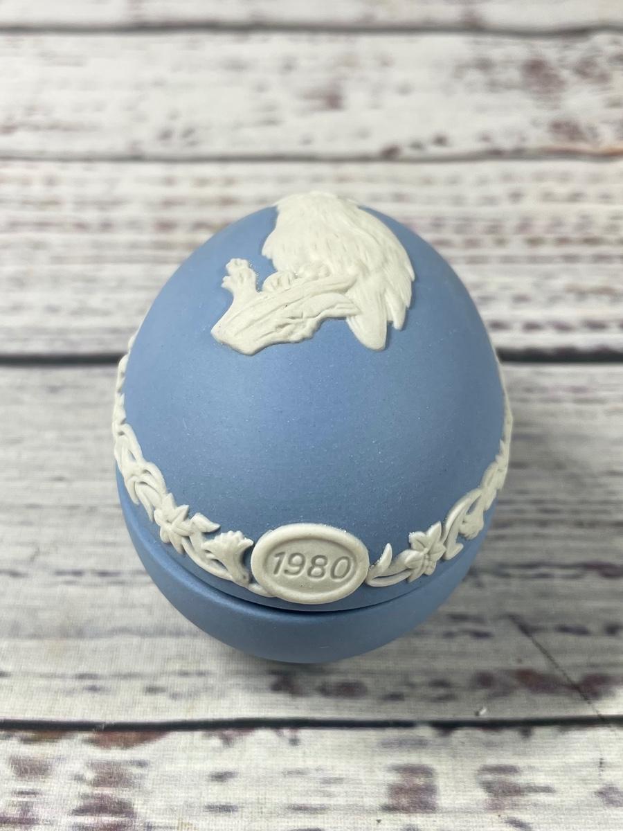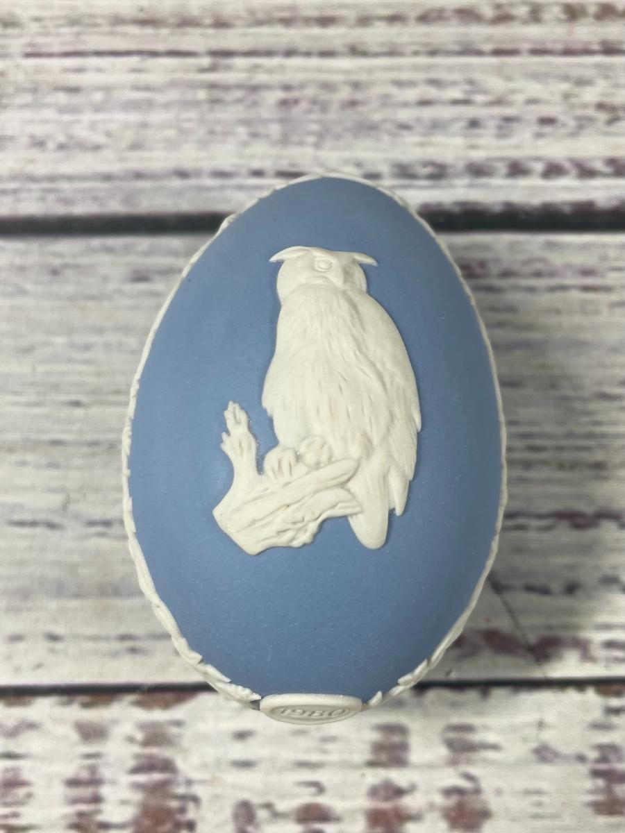 Wedgwood Easter Egg for 1980 in White on Pale Blue Jasperware Owl Trinket Dish