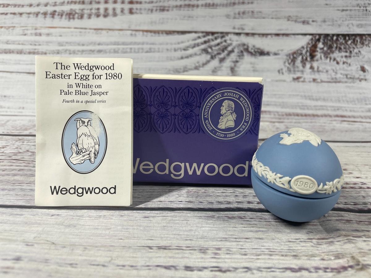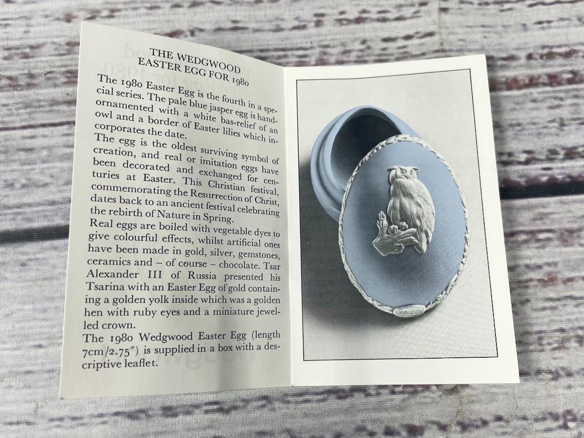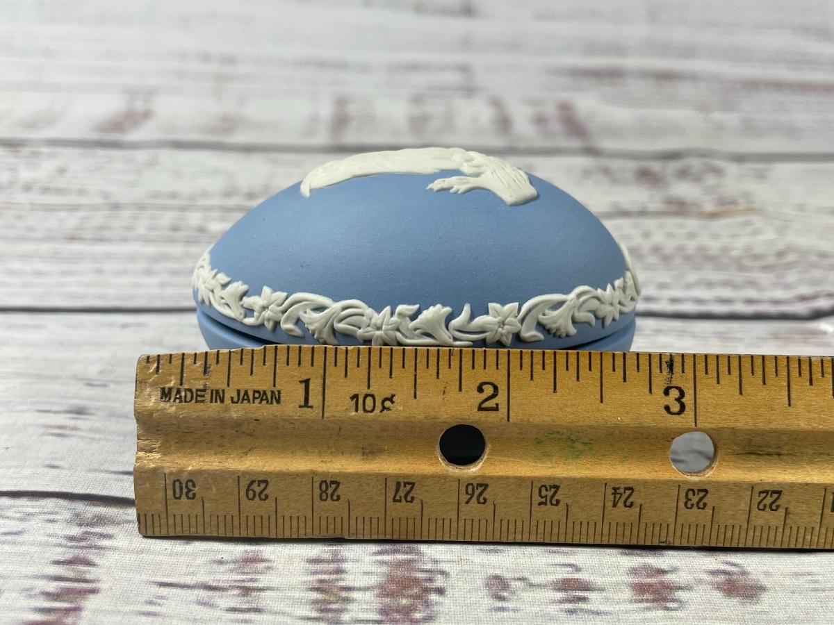 Wedgwood Easter Egg for 1980 in White on Pale Blue Jasperware Owl Trinket Dish