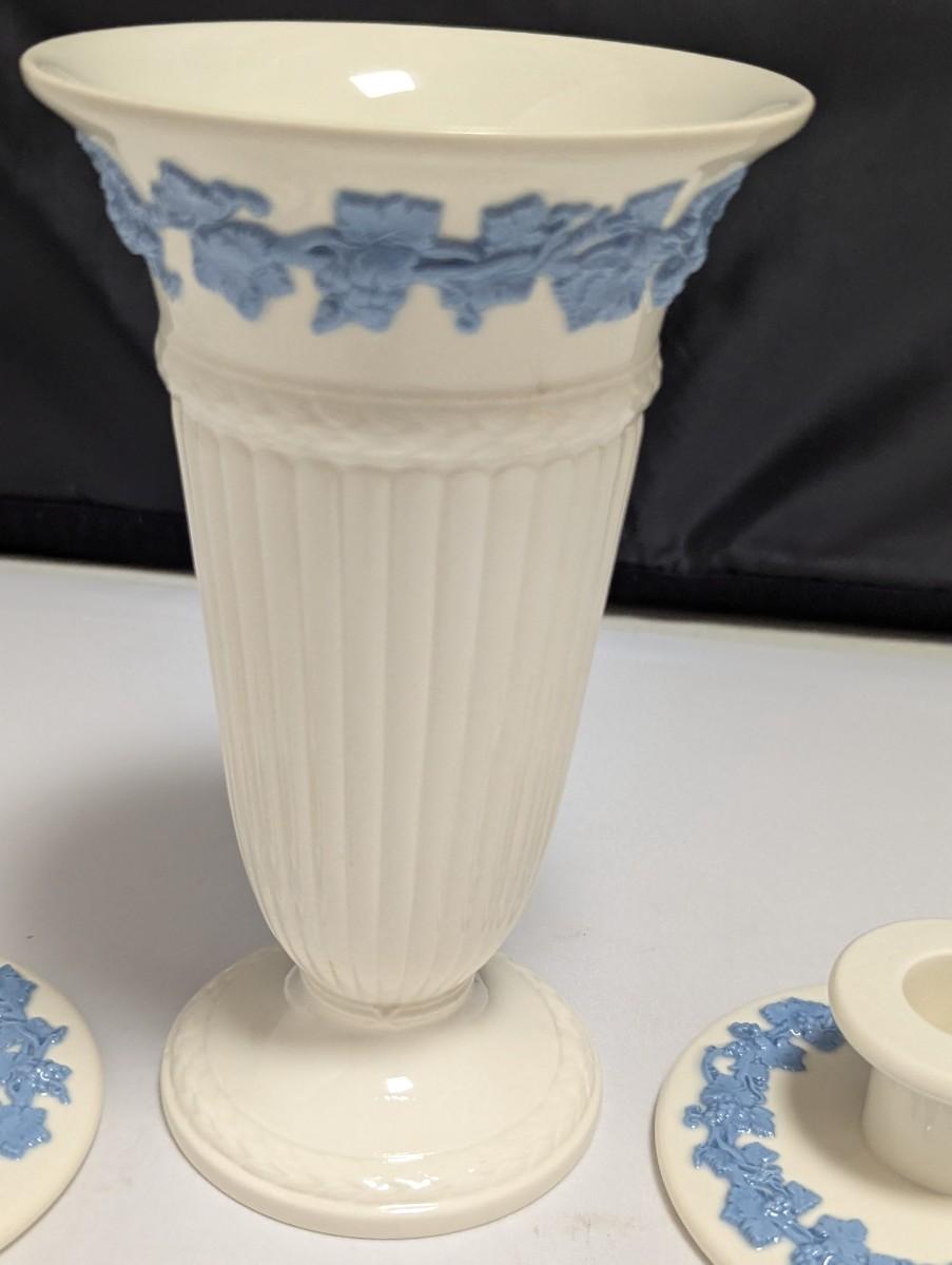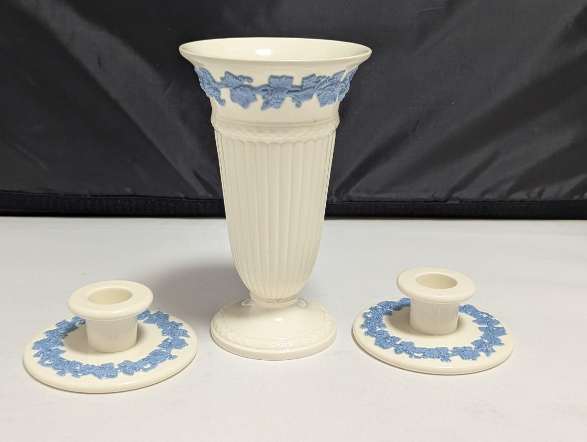 Wedgwood Etruria & Barlaston Queensware Vase & Candle Holders #52