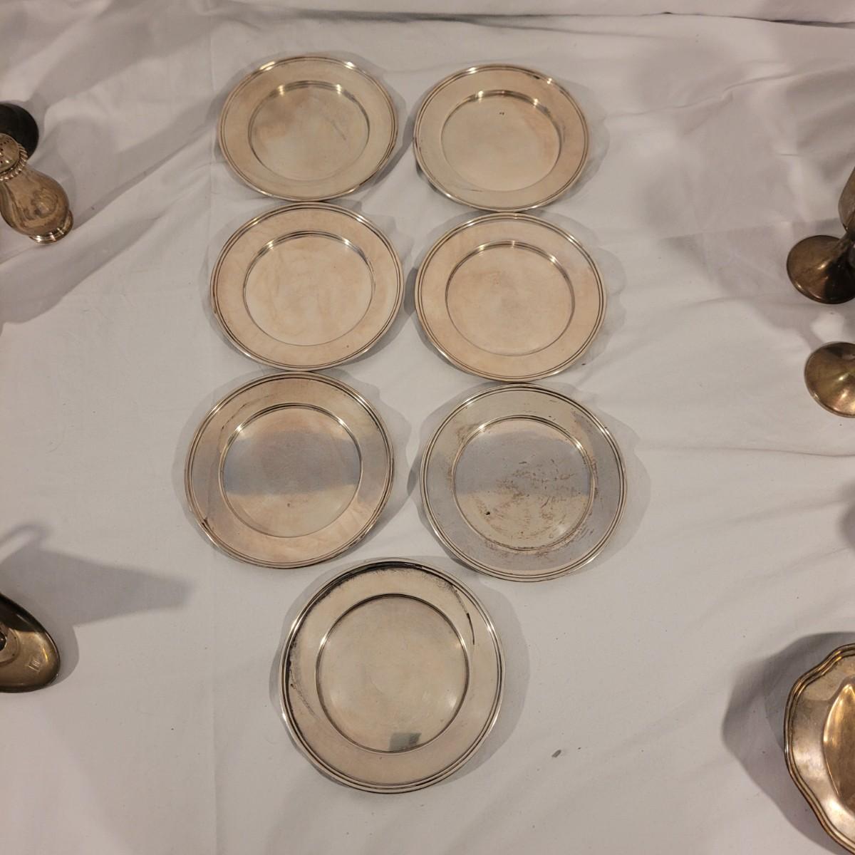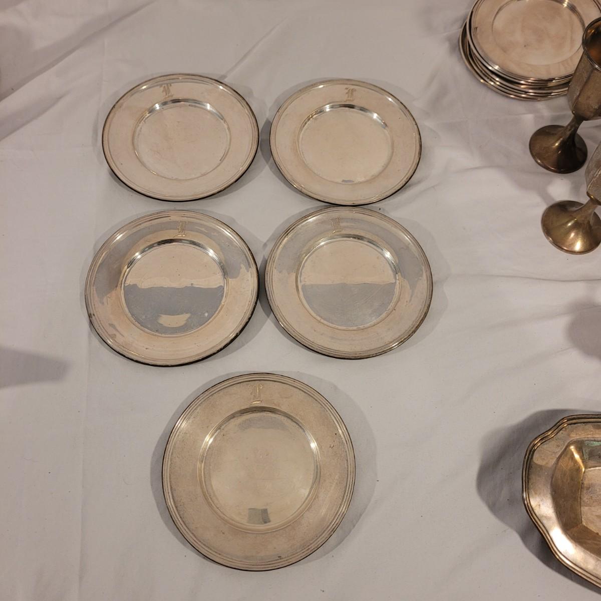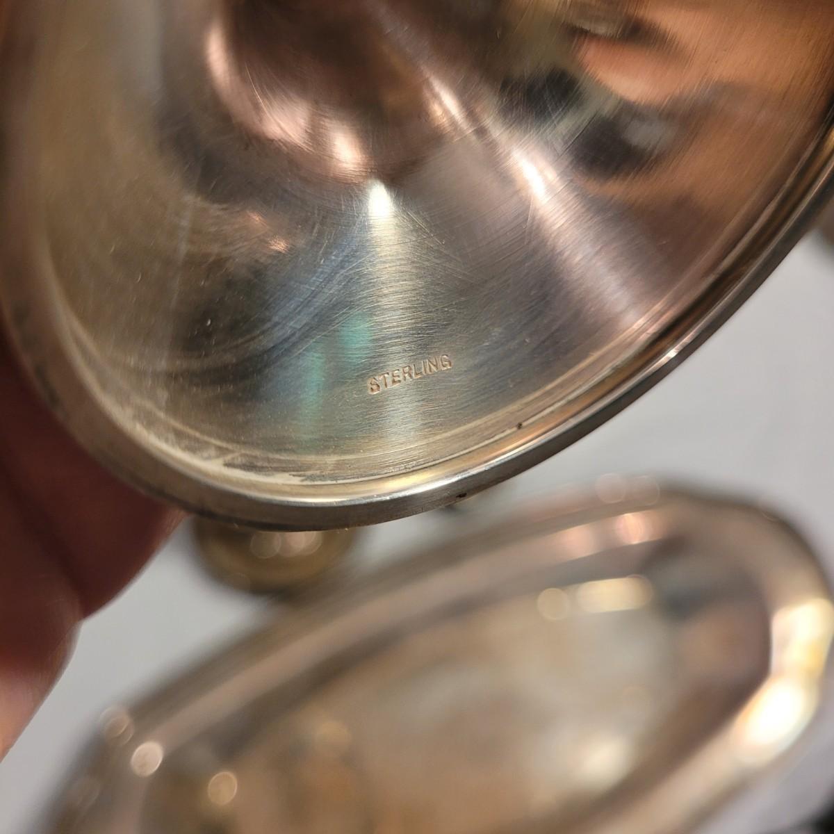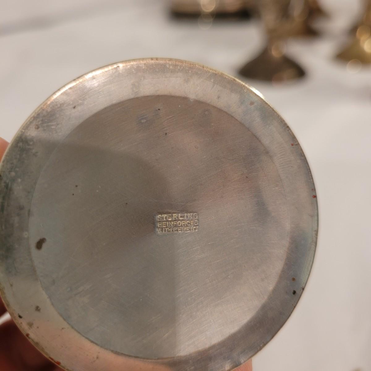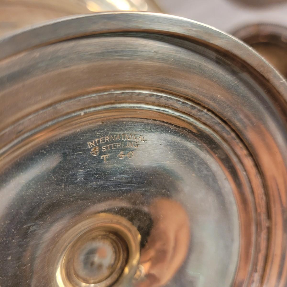 This large assortment of sterling silver pieces include a Wedgwood compote footed bowl, Gorham candlestick holders, demitasse espresso cups (no inserts), goblets, salt and pepper shakers, gravy boat, small plates, a serving tray and more. A large collection of felt polishing cloths included as well. Compote bowl measures approximately 10”D x 5.5”H. Shipping available. All sales are final. No returns or refunds. Please bid accordingly. Starting bid is at or near melt value.