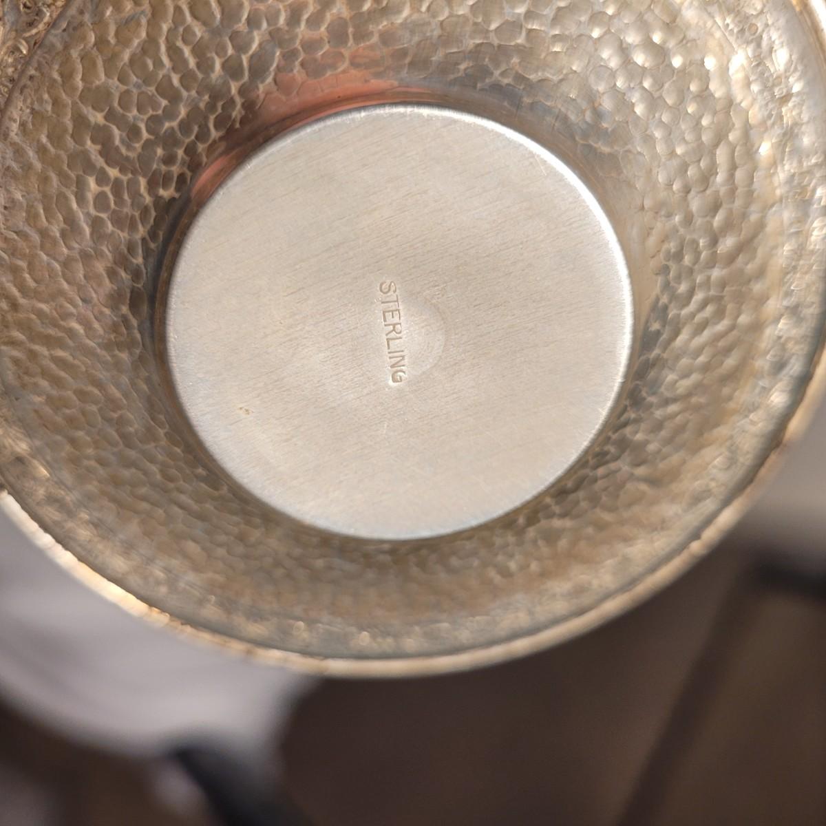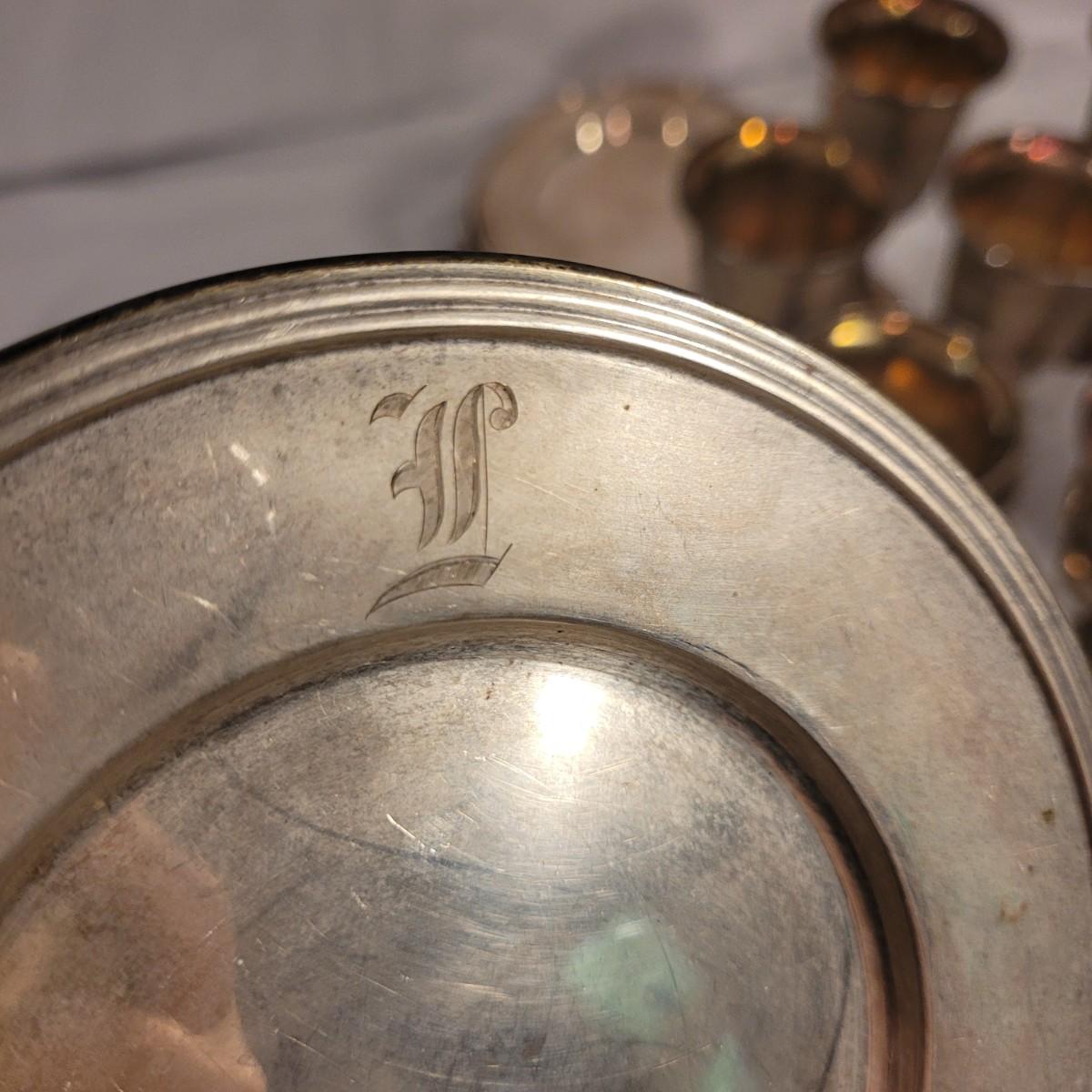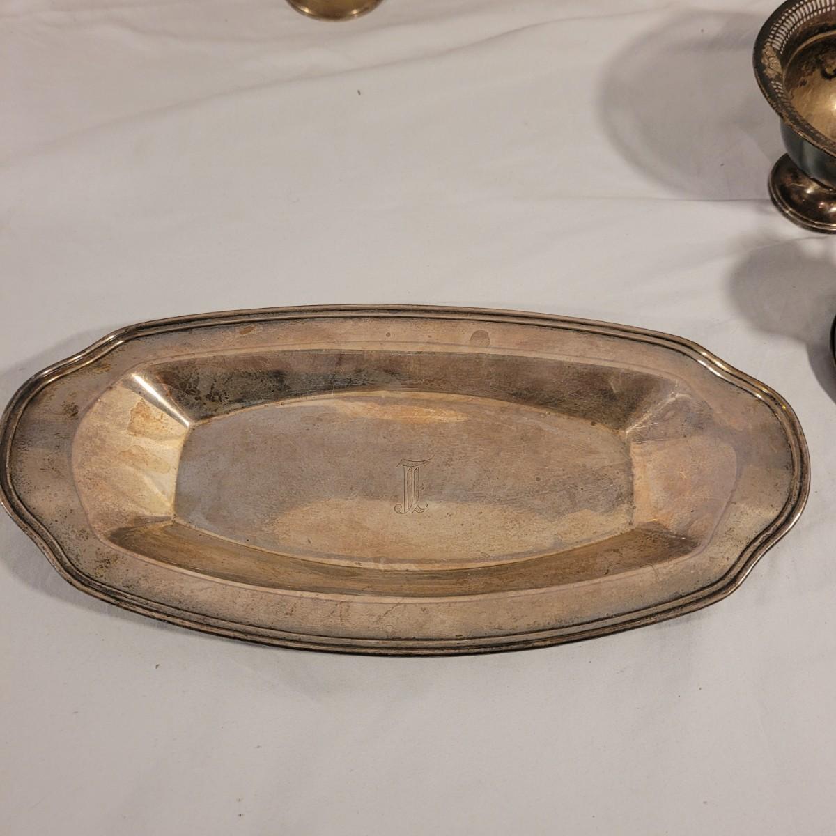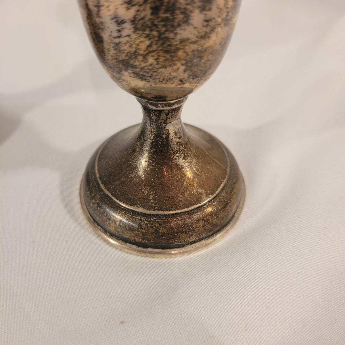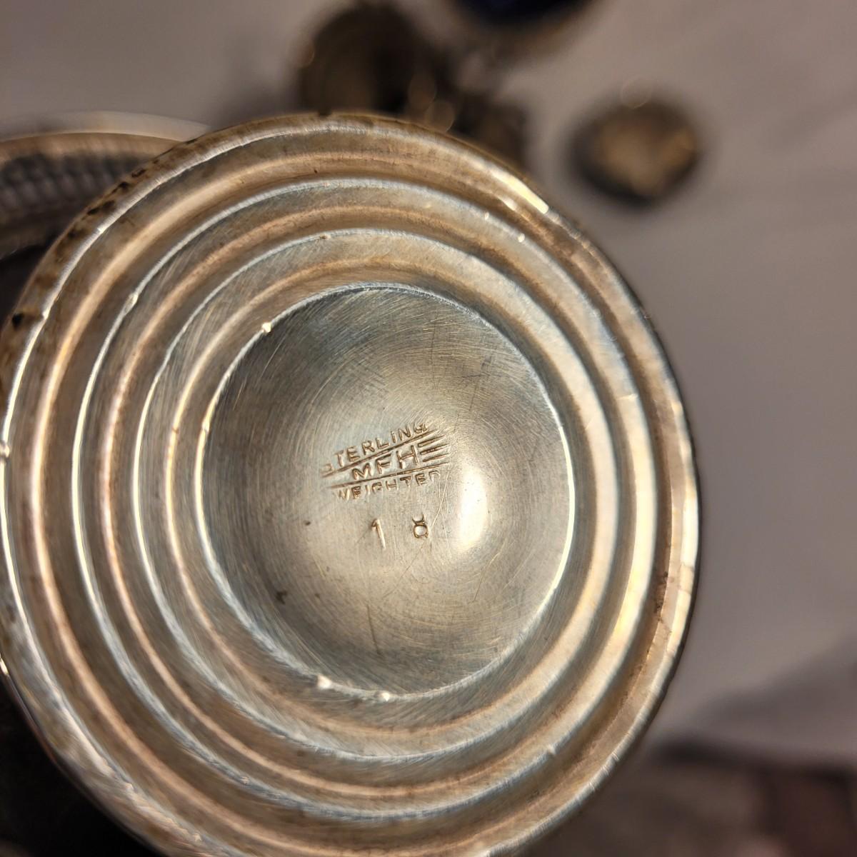 This large assortment of sterling silver pieces include a Wedgwood compote footed bowl, Gorham candlestick holders, demitasse espresso cups (no inserts), goblets, salt and pepper shakers, gravy boat, small plates, a serving tray and more. A large collection of felt polishing cloths included as well. Compote bowl measures approximately 10”D x 5.5”H. Shipping available. All sales are final. No returns or refunds. Please bid accordingly. Starting bid is at or near melt value.