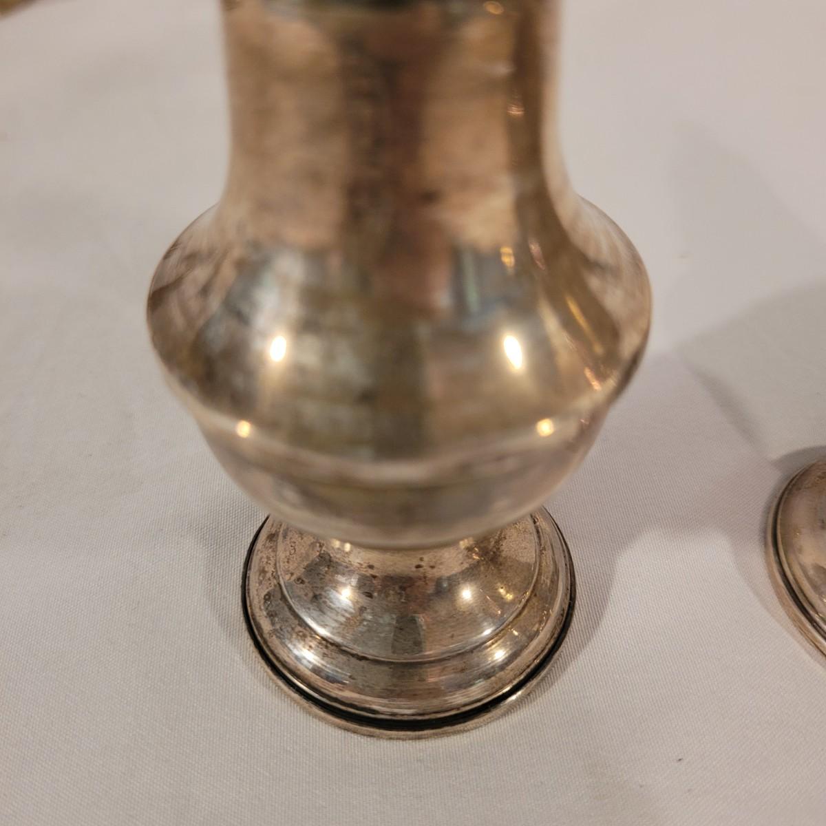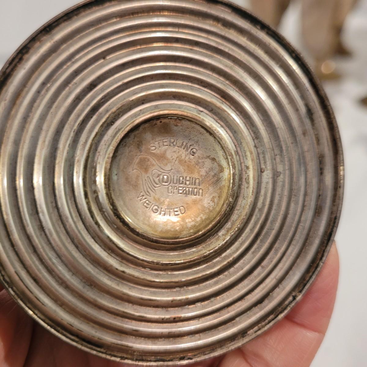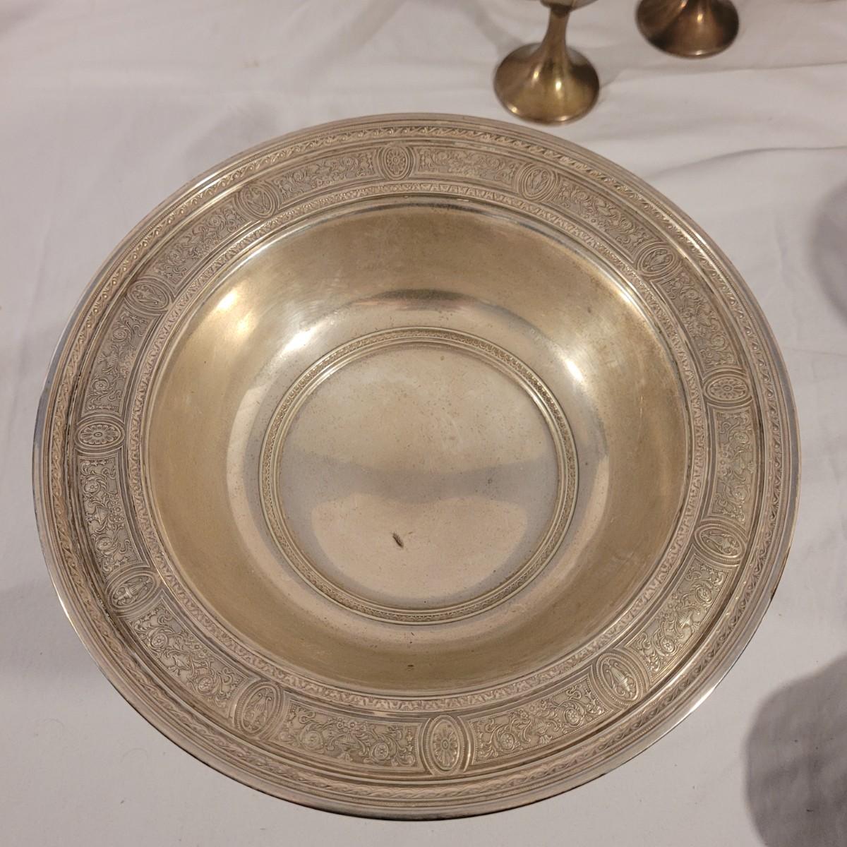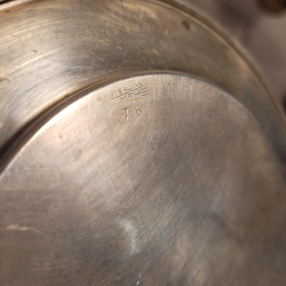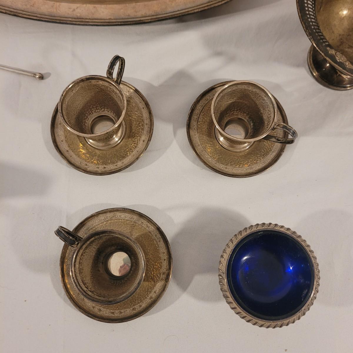 This large assortment of sterling silver pieces include a Wedgwood compote footed bowl, Gorham candlestick holders, demitasse espresso cups (no inserts), goblets, salt and pepper shakers, gravy boat, small plates, a serving tray and more. A large collection of felt polishing cloths included as well. Compote bowl measures approximately 10”D x 5.5”H. Shipping available. All sales are final. No returns or refunds. Please bid accordingly. Starting bid is at or near melt value.