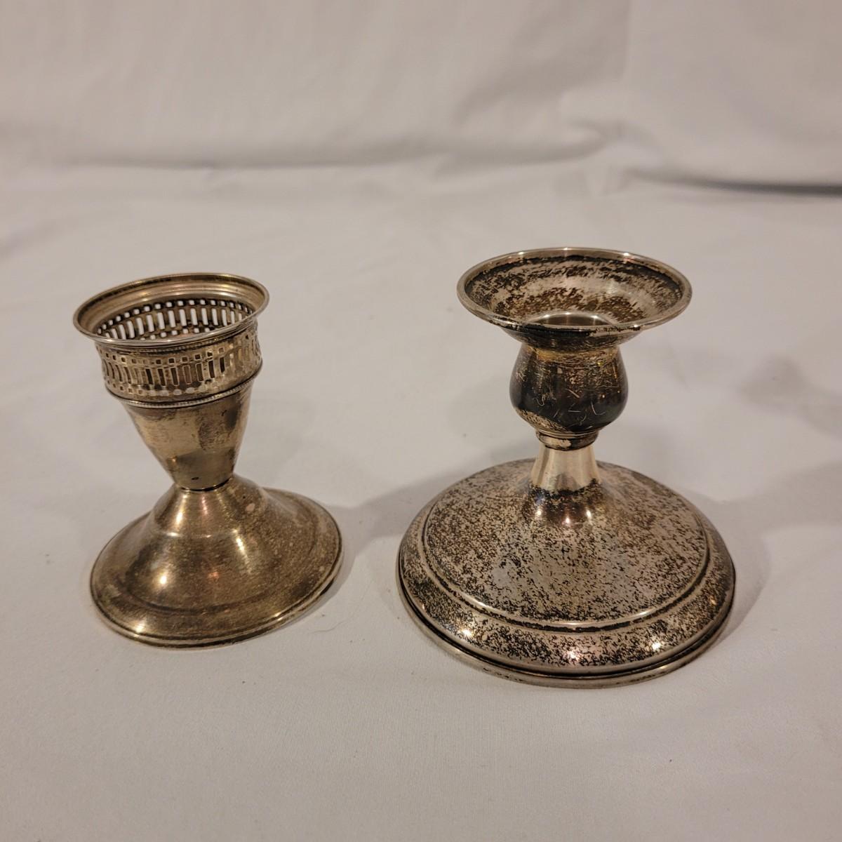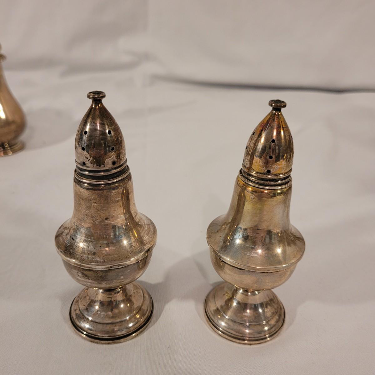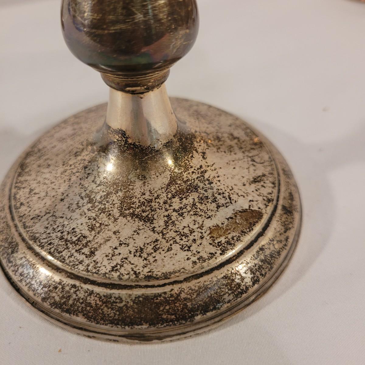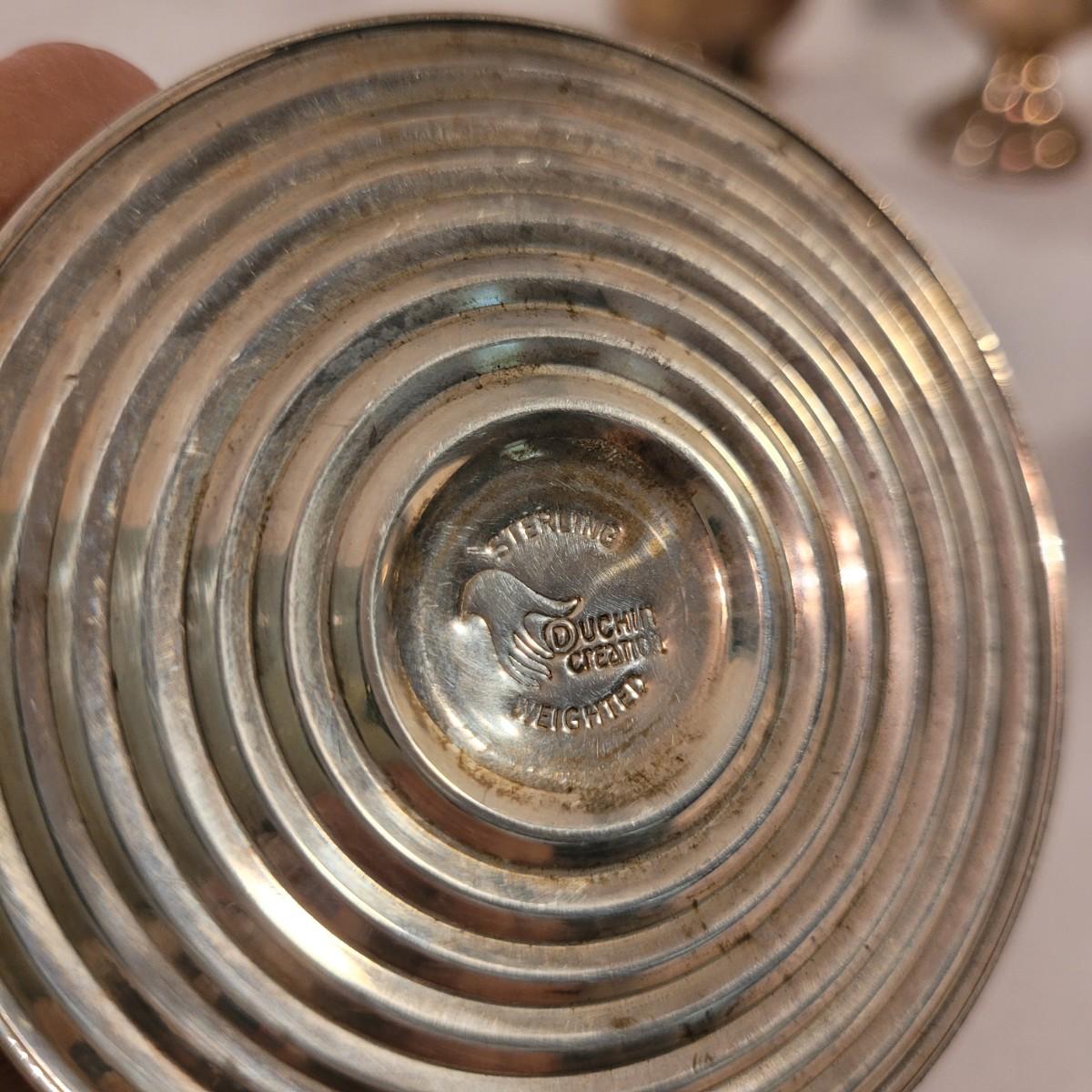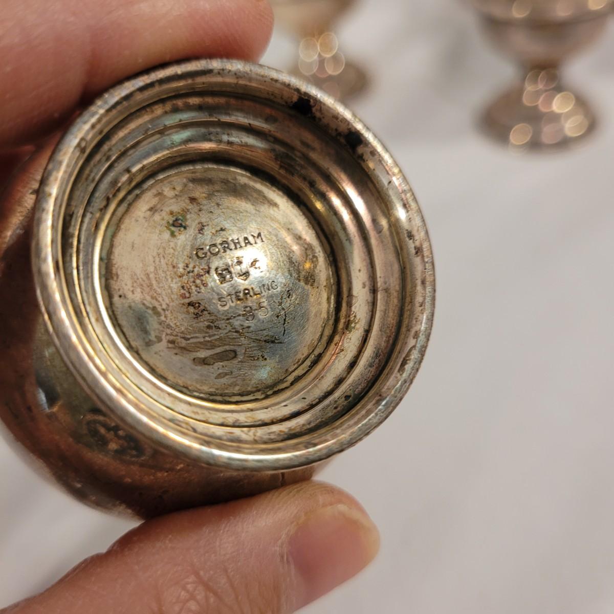This large assortment of sterling silver pieces include a Wedgwood compote footed bowl, Gorham candlestick holders, demitasse espresso cups (no inserts), goblets, salt and pepper shakers, gravy boat, small plates, a serving tray and more. A large collection of felt polishing cloths included as well. Compote bowl measures approximately 10”D x 5.5”H. Shipping available. All sales are final. No returns or refunds. Please bid accordingly. Starting bid is at or near melt value.
