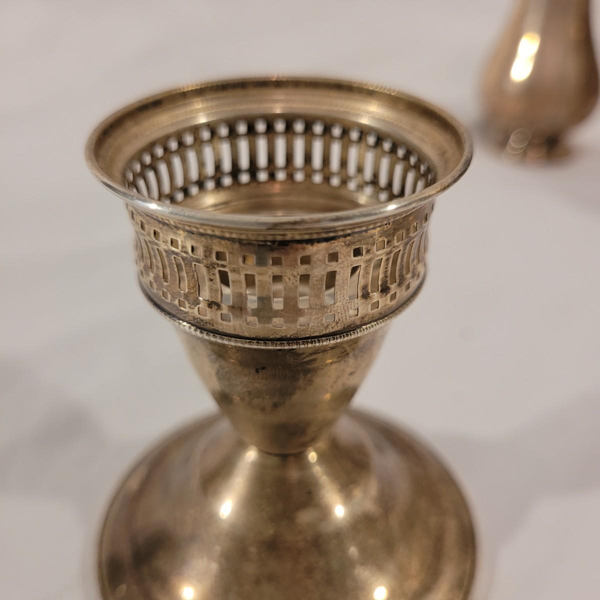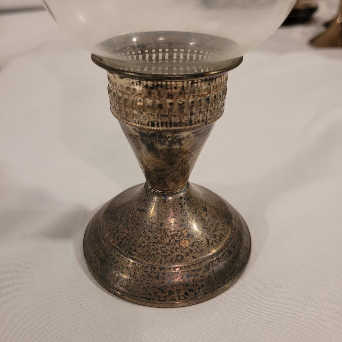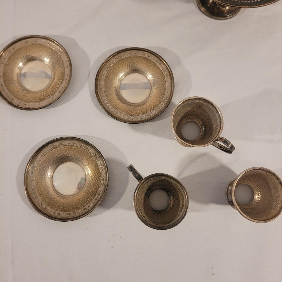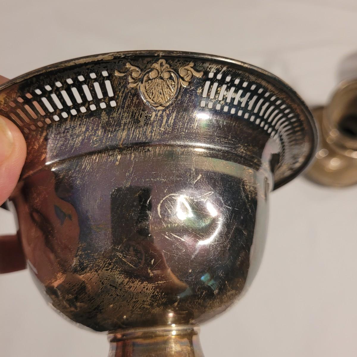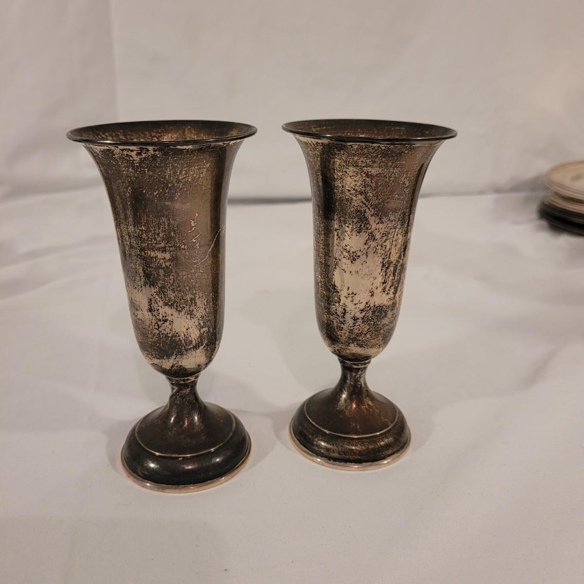 This large assortment of sterling silver pieces include a Wedgwood compote footed bowl, Gorham candlestick holders, demitasse espresso cups (no inserts), goblets, salt and pepper shakers, gravy boat, small plates, a serving tray and more. A large collection of felt polishing cloths included as well. Compote bowl measures approximately 10”D x 5.5”H. Shipping available. All sales are final. No returns or refunds. Please bid accordingly. Starting bid is at or near melt value.