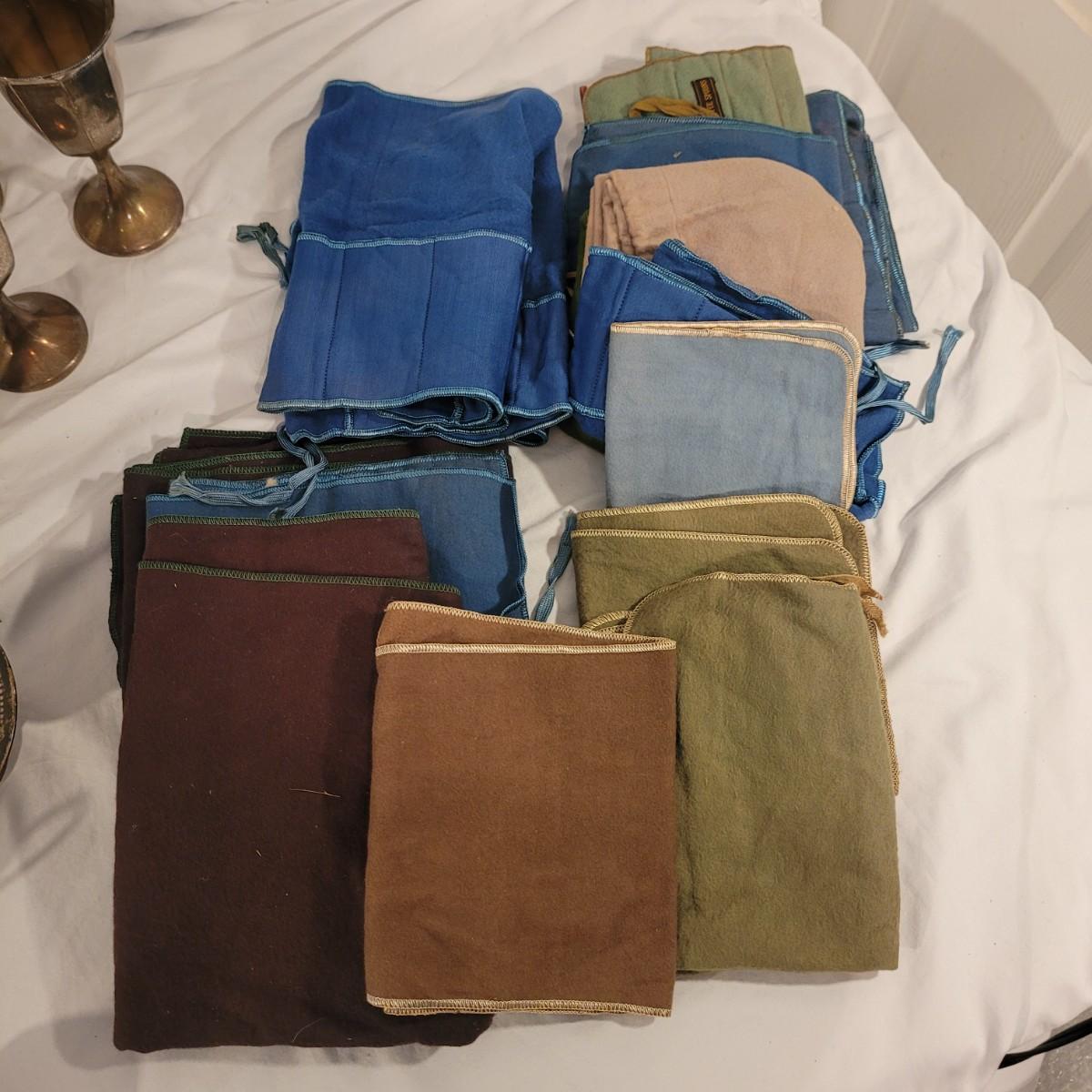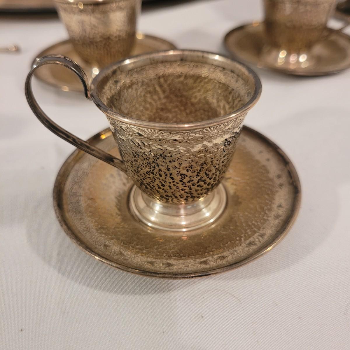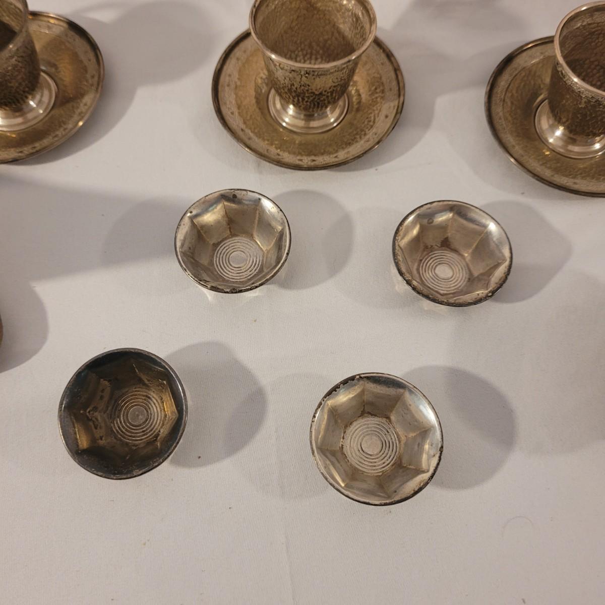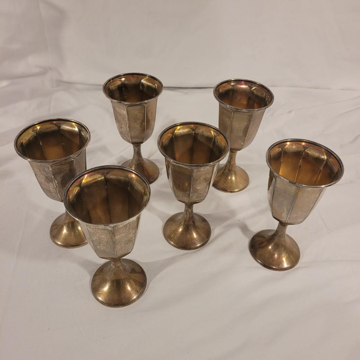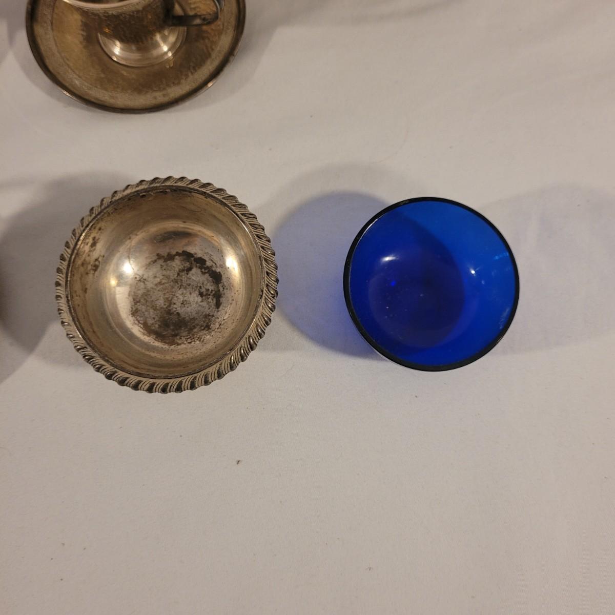 This large assortment of sterling silver pieces include a Wedgwood compote footed bowl, Gorham candlestick holders, demitasse espresso cups (no inserts), goblets, salt and pepper shakers, gravy boat, small plates, a serving tray and more. A large collection of felt polishing cloths included as well. Compote bowl measures approximately 10”D x 5.5”H. Shipping available. All sales are final. No returns or refunds. Please bid accordingly. Starting bid is at or near melt value.
