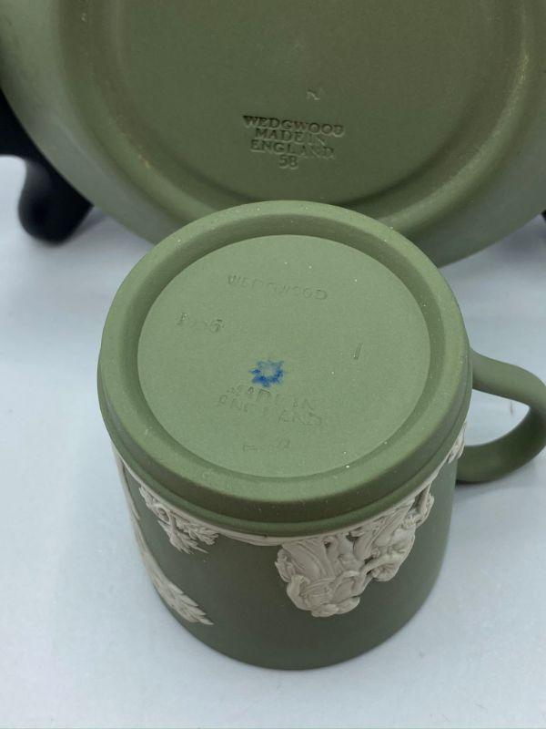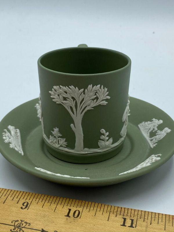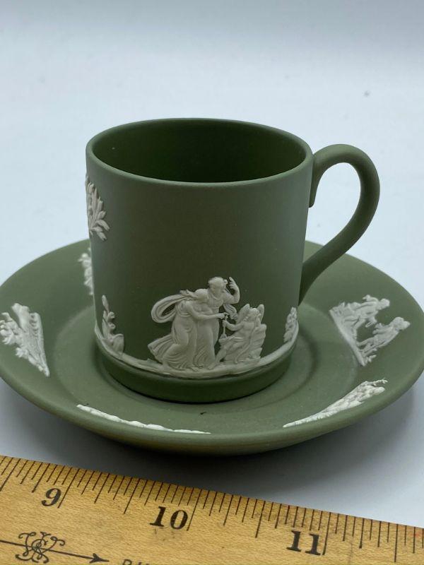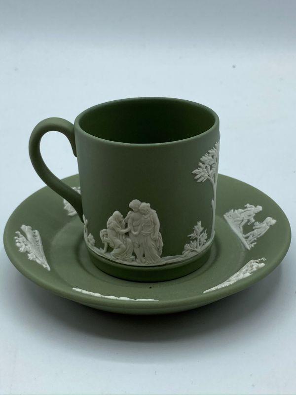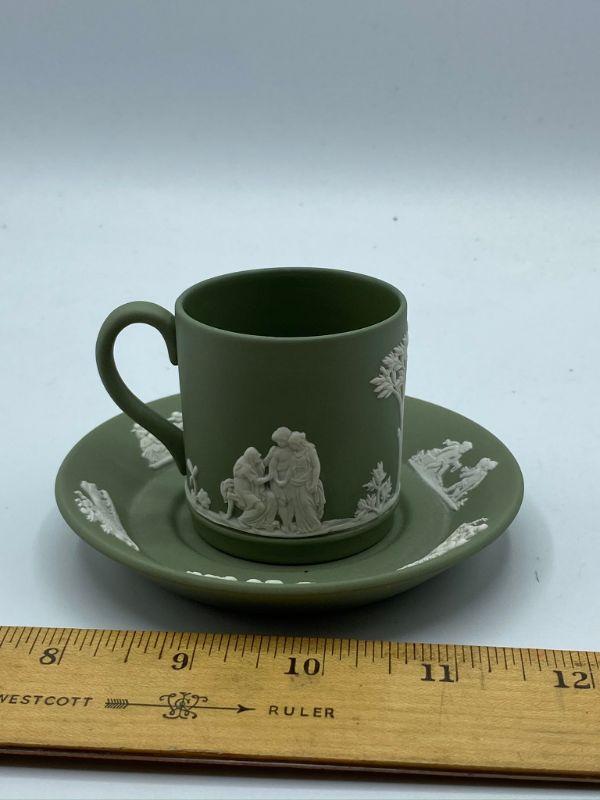 Wedgwood Jasperware demitasse cup and saucer. Beautiful sage green color. Great condition.