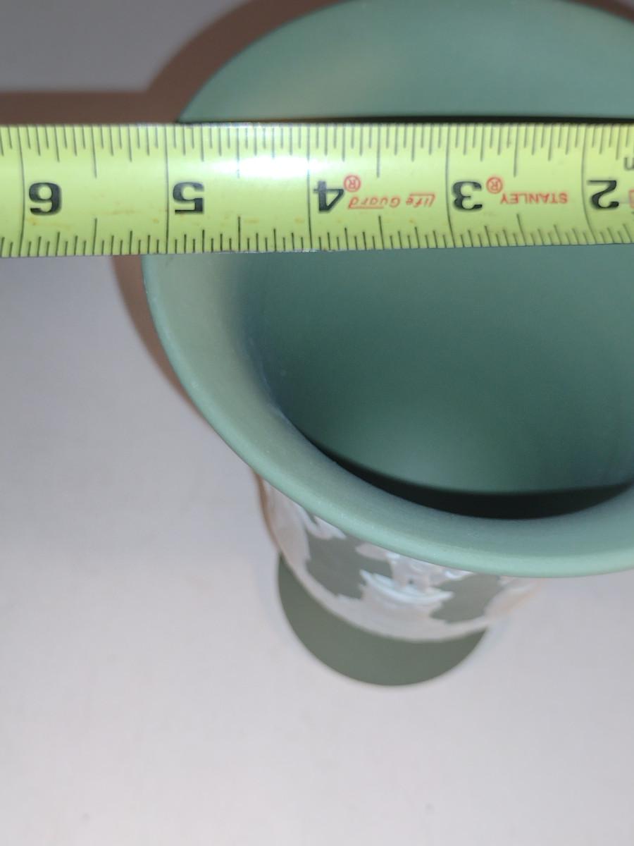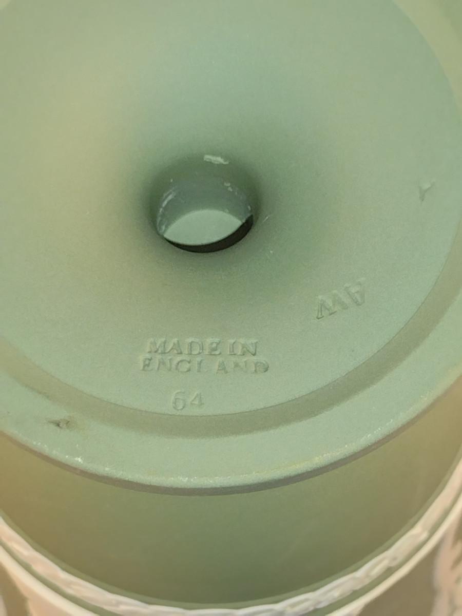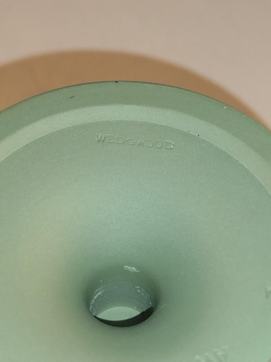 Wedgwood Jasperware Flared Top Pedestal Arcadian Vase- White on Celadon (DR)