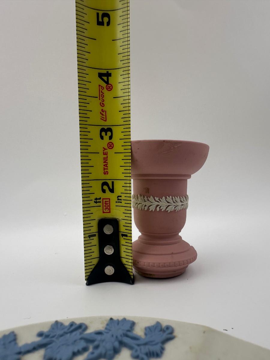 Wedgwood Jasperware Lot – Ashtray, Ornament & Pink Candle Holders