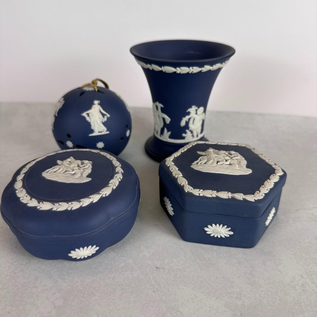 Authentic Wedgwood Jasperware Trinket Boxes, Vase, and Pomander