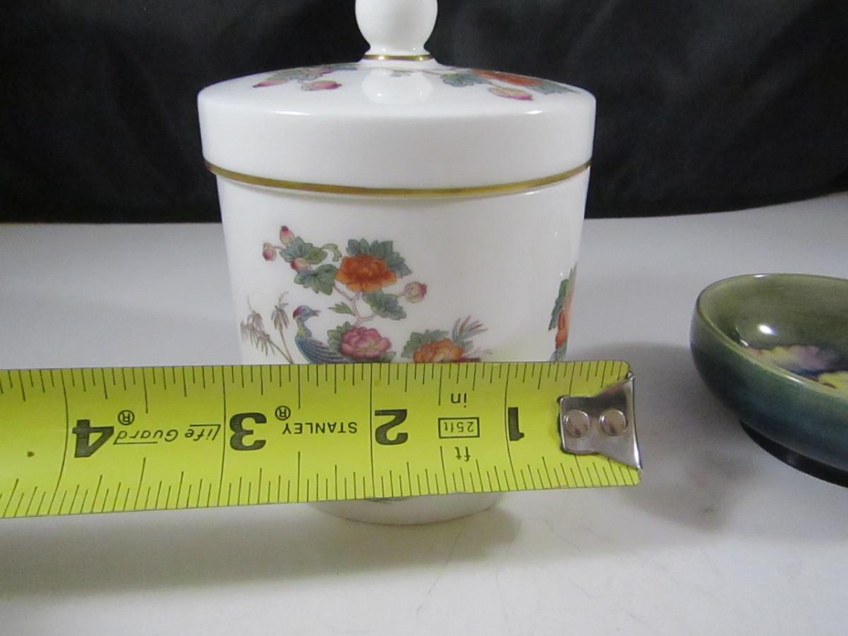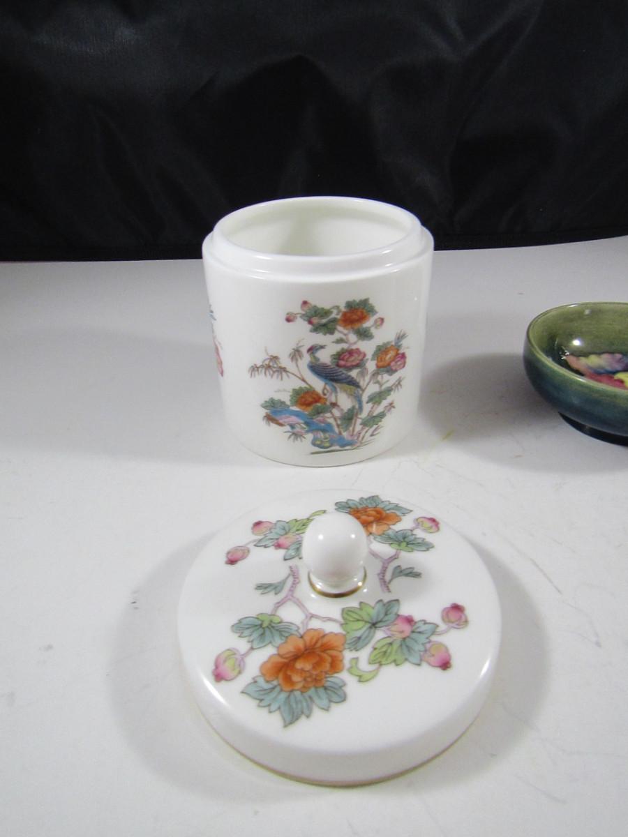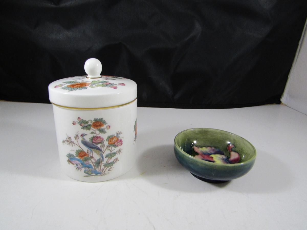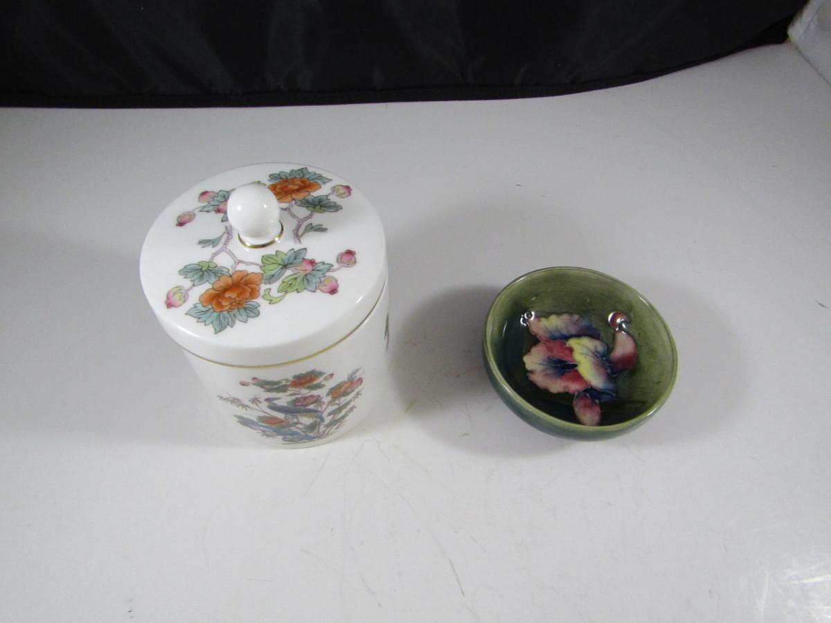 Wedgwood Kutani Crane Candy Dish with Lid and Moorcroft Small 3" Bowl with Peacock Design