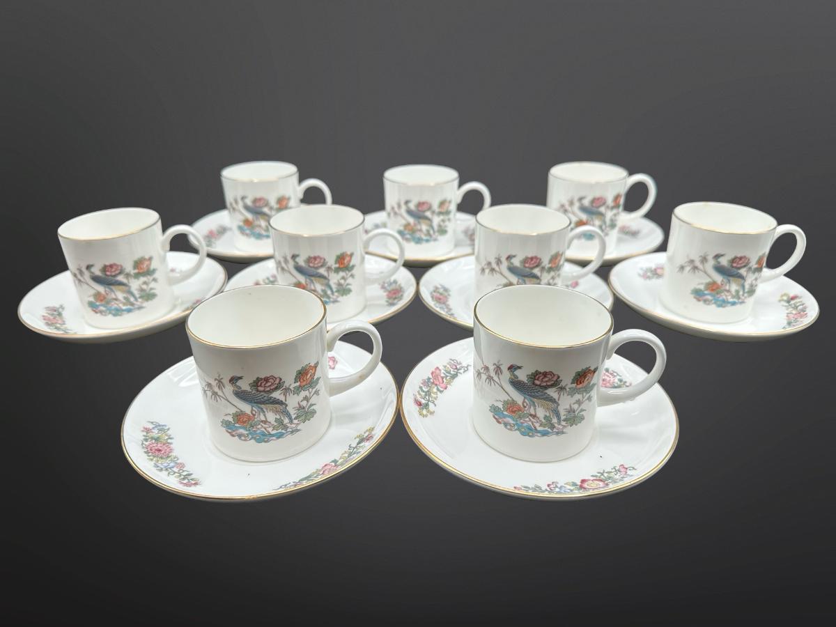 WEDGWOOD Kutani Crane Teacups & Saucers