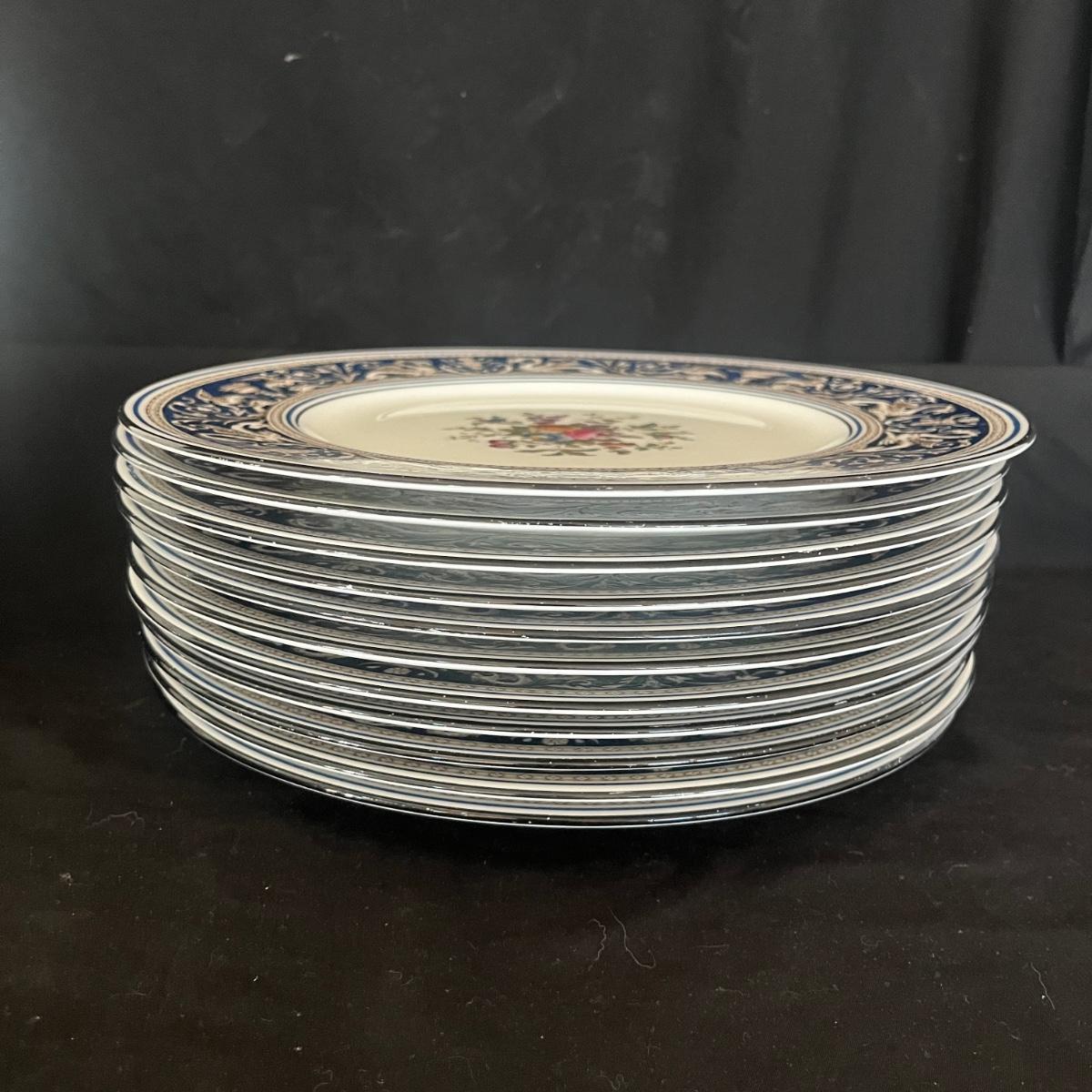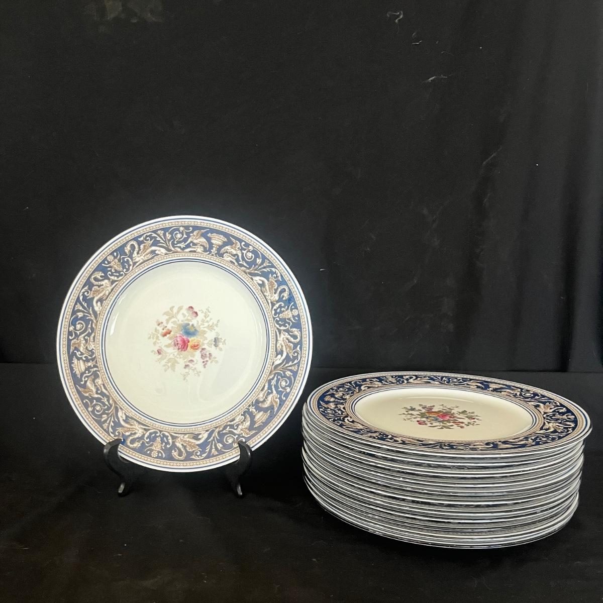 Lot includes 12 Wedgwood plates with a floral pattern. Plates measure 10.5”D.