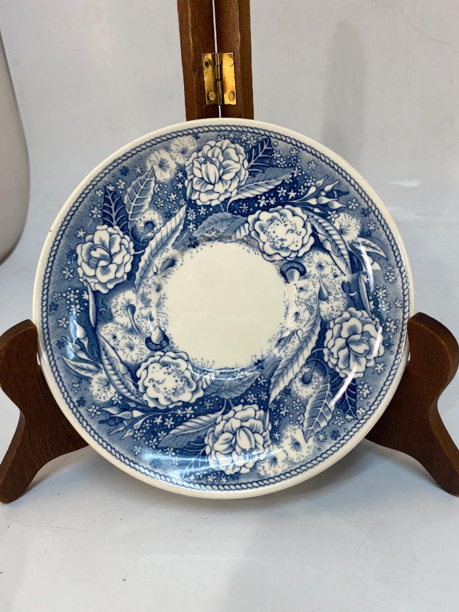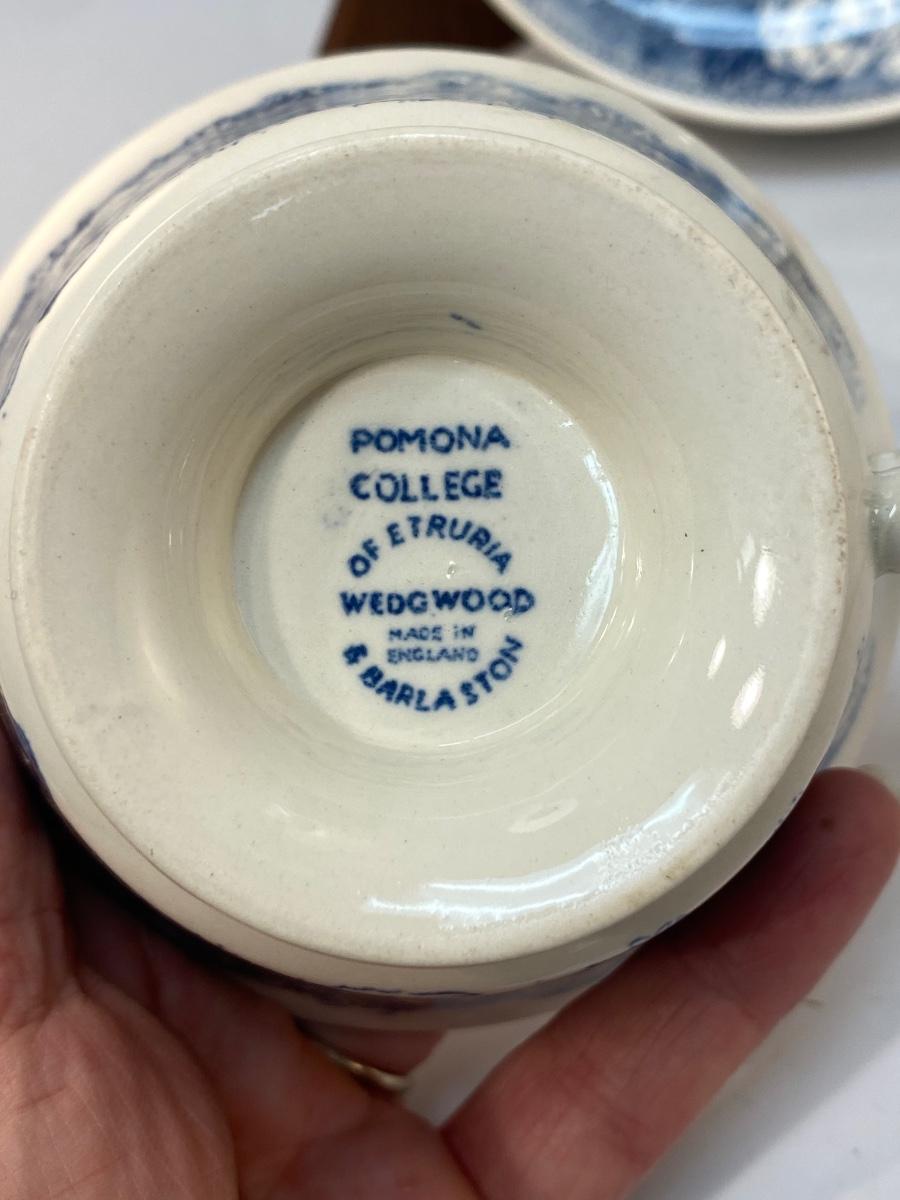 Wedgwood Porcelain Pomona College Blue and White Teacup and Saucer Wedgewood