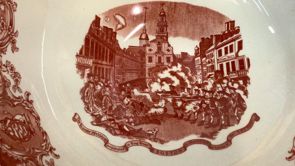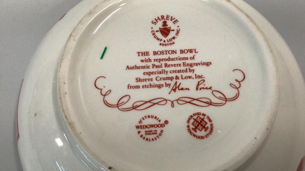 9.5 x 4 inch bowlÂ…designed from Paul Revere Engravings of The Massacre at King StreetÂ…produced forShreve Crump, and Low..good condition