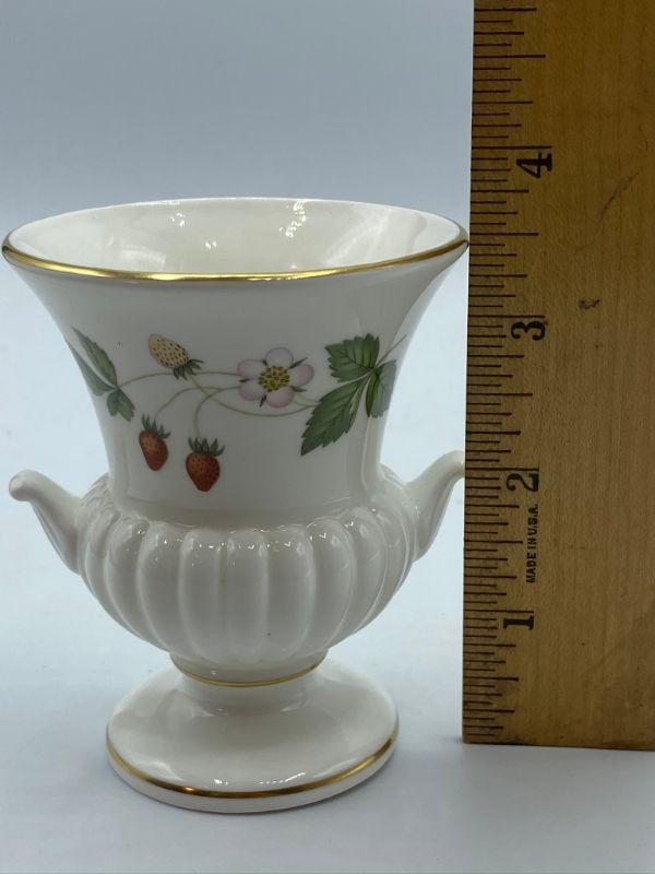 Wedgwood China "Wild Strawberry" Urn. Small size, maybe a bud vase or toothpick holder. Good Condition.