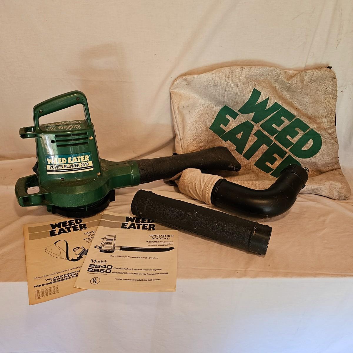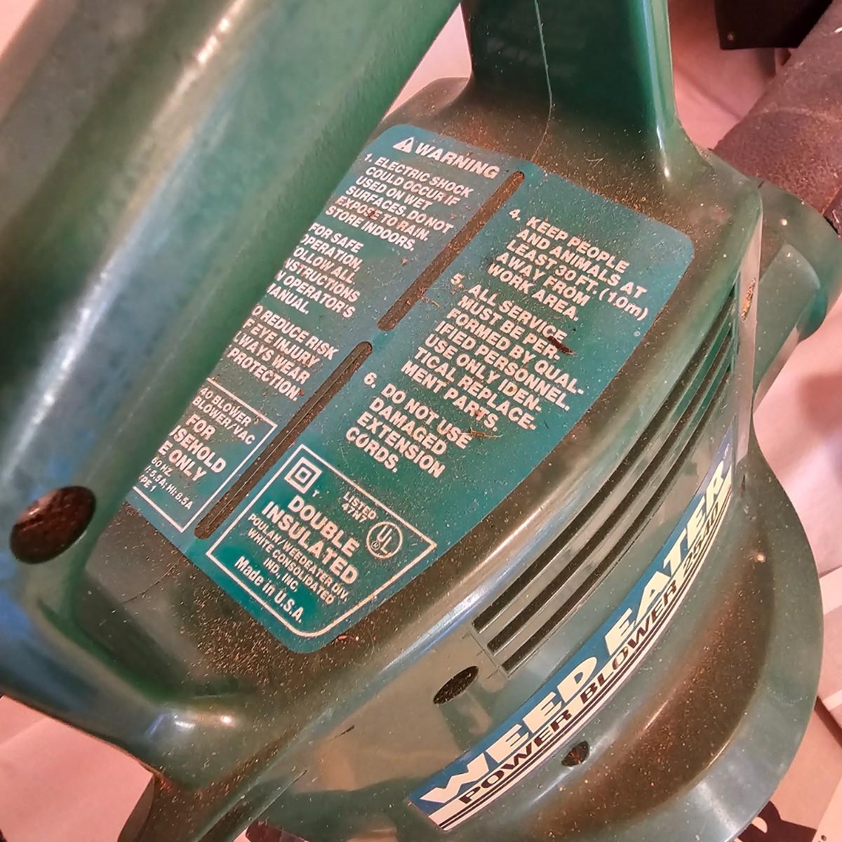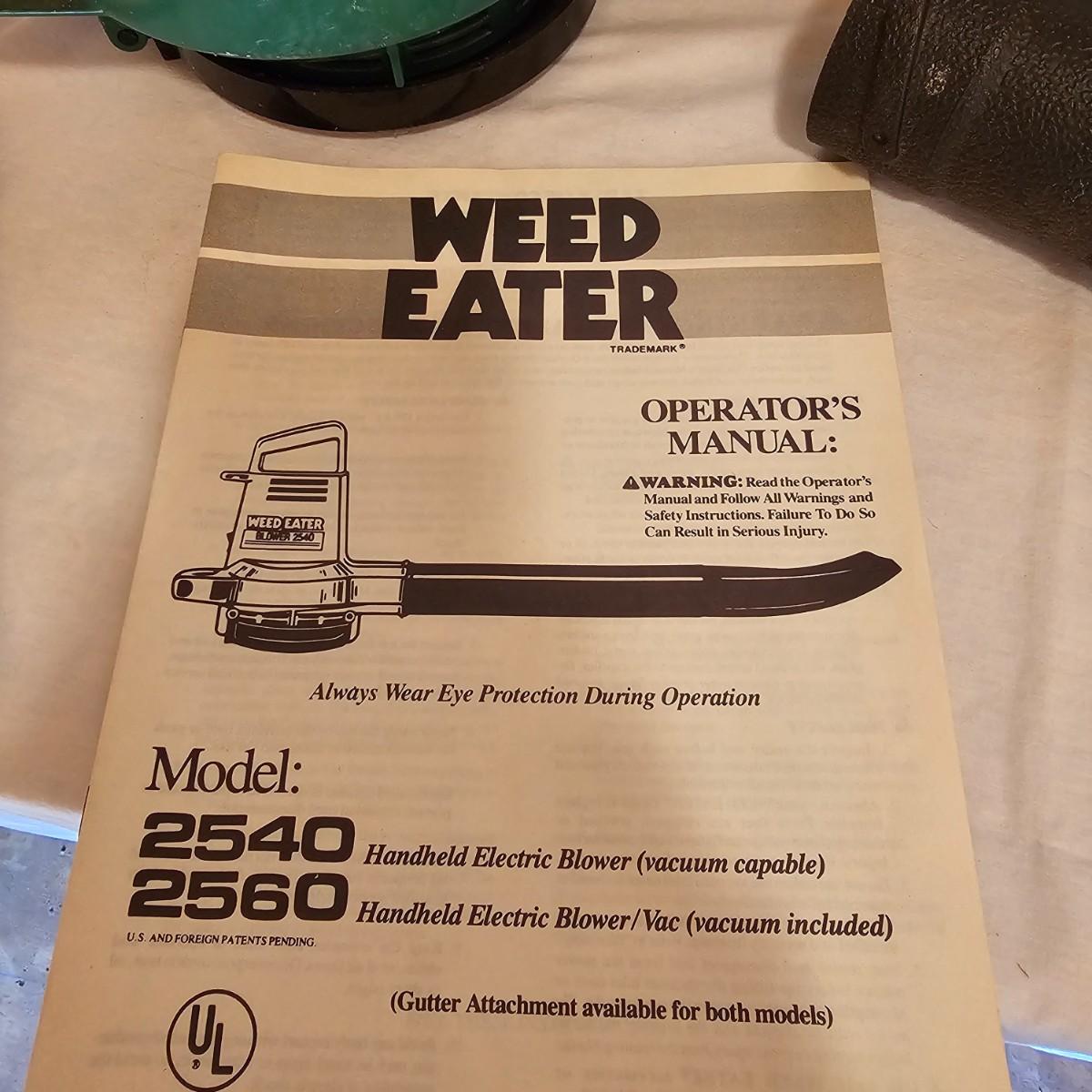 Weed Eater brand handheld blower/vacuum. Comes with with 14" extension tube and bag unit. Includes instruction manuals. Unit powered on when plugged in. See photos for details. Local pickup only.