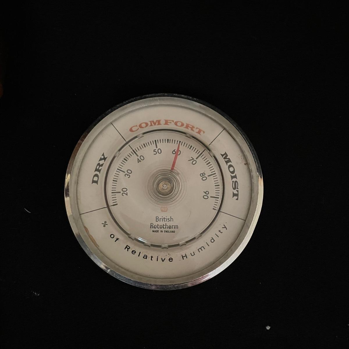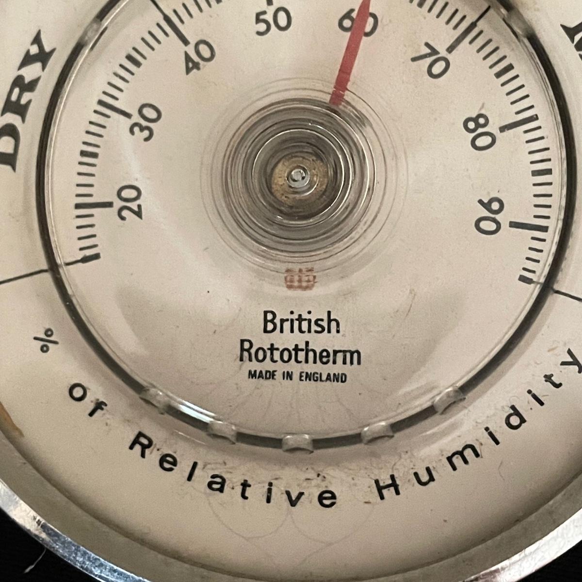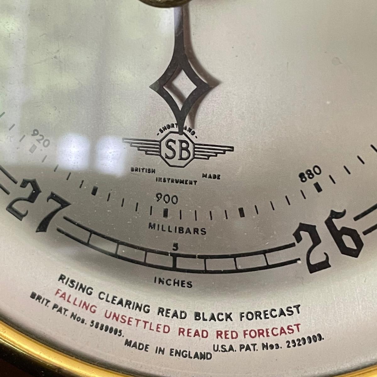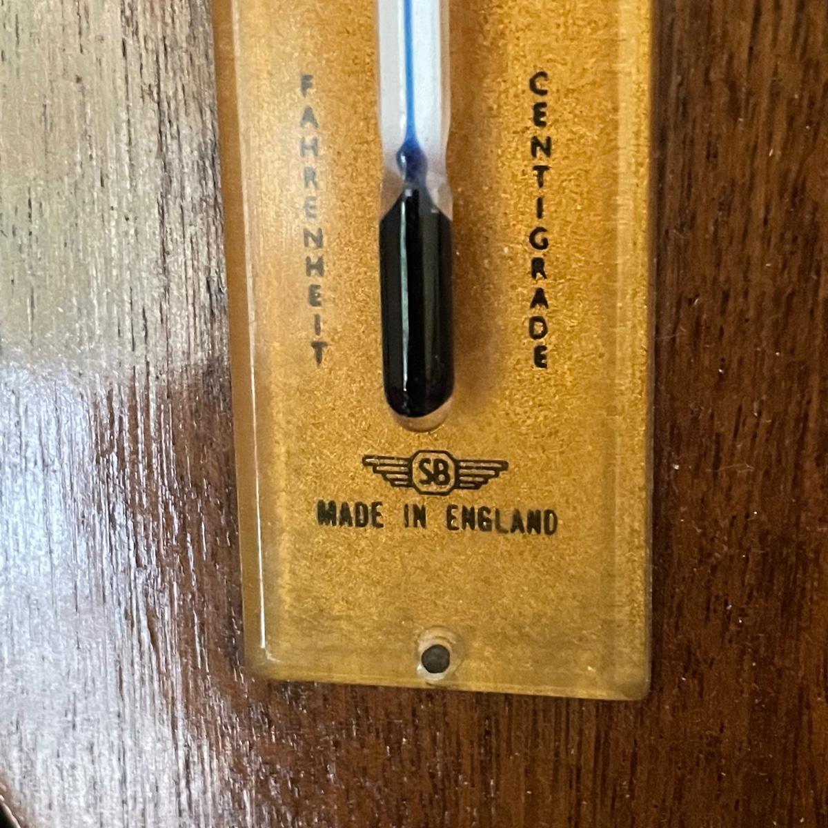 Weems & Plath Gimbal Box Clock for sea travel measures approximately 5.5”sq x 4”. Shortland barometer is 17” long and the British Rototherm has a 2.75” diameter. Both the clock and the barometer have engraved placards, the barometer’s dates back to 1966-68. See images. Items were not tested for accuracy. Shipping available.