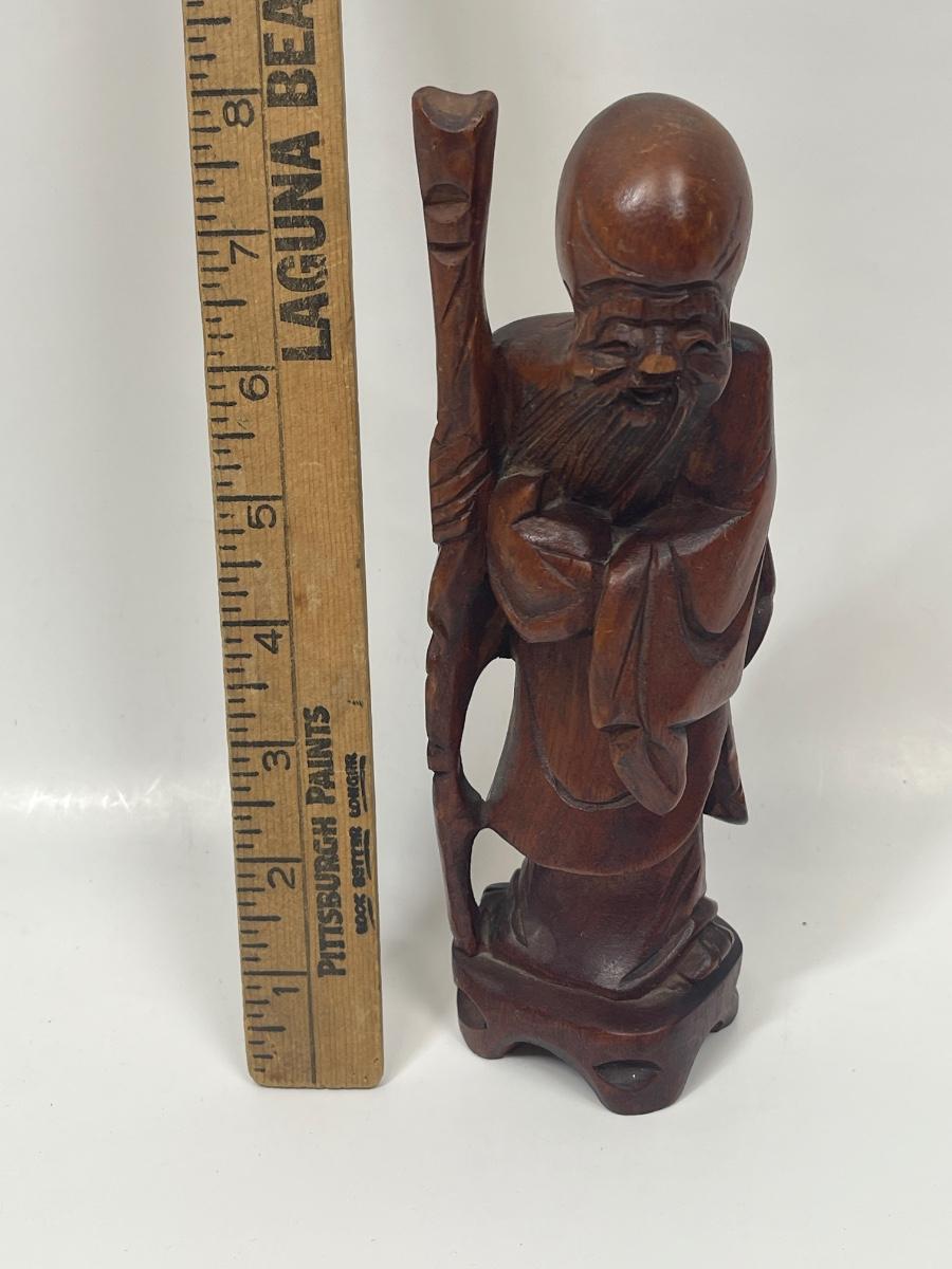 Chinese Wood Statue Confucius Old Man Figure Figurine Statuette