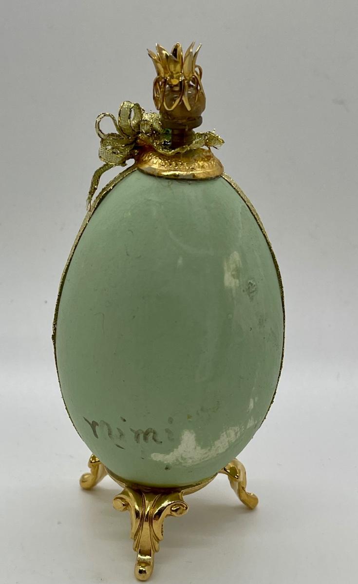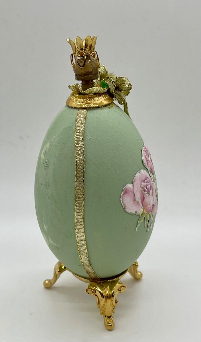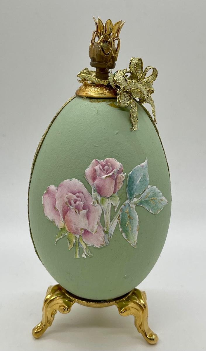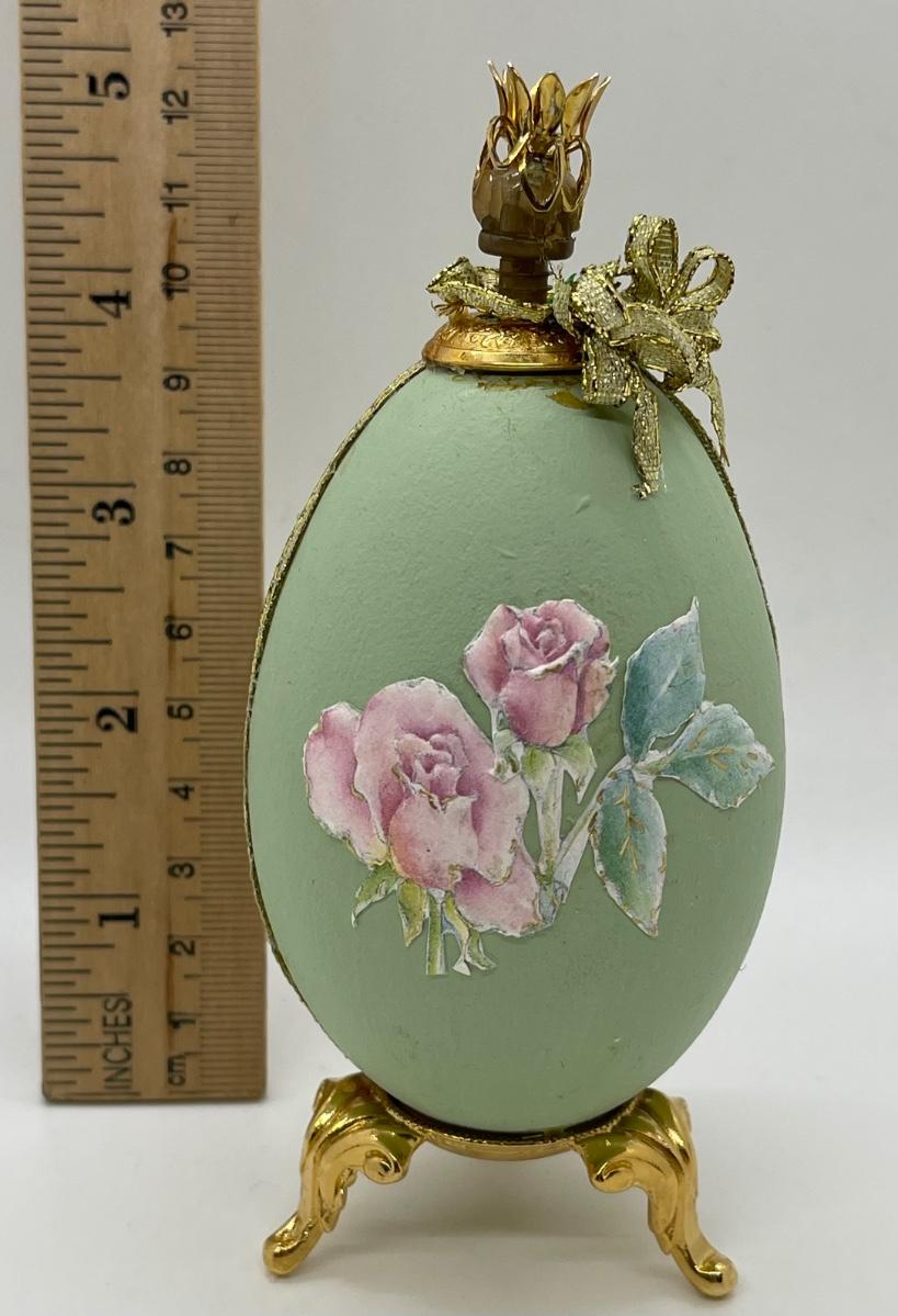Hand Painted Decoupaged Flower Gold Trim Egg Figurine