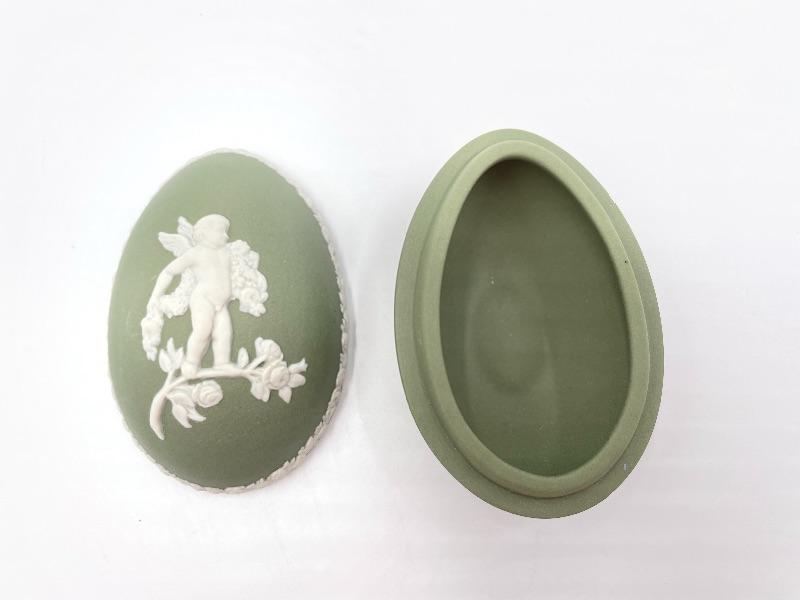 WEDGWOOD GREEN JASPERWARE CHERUB LIDDED EGG