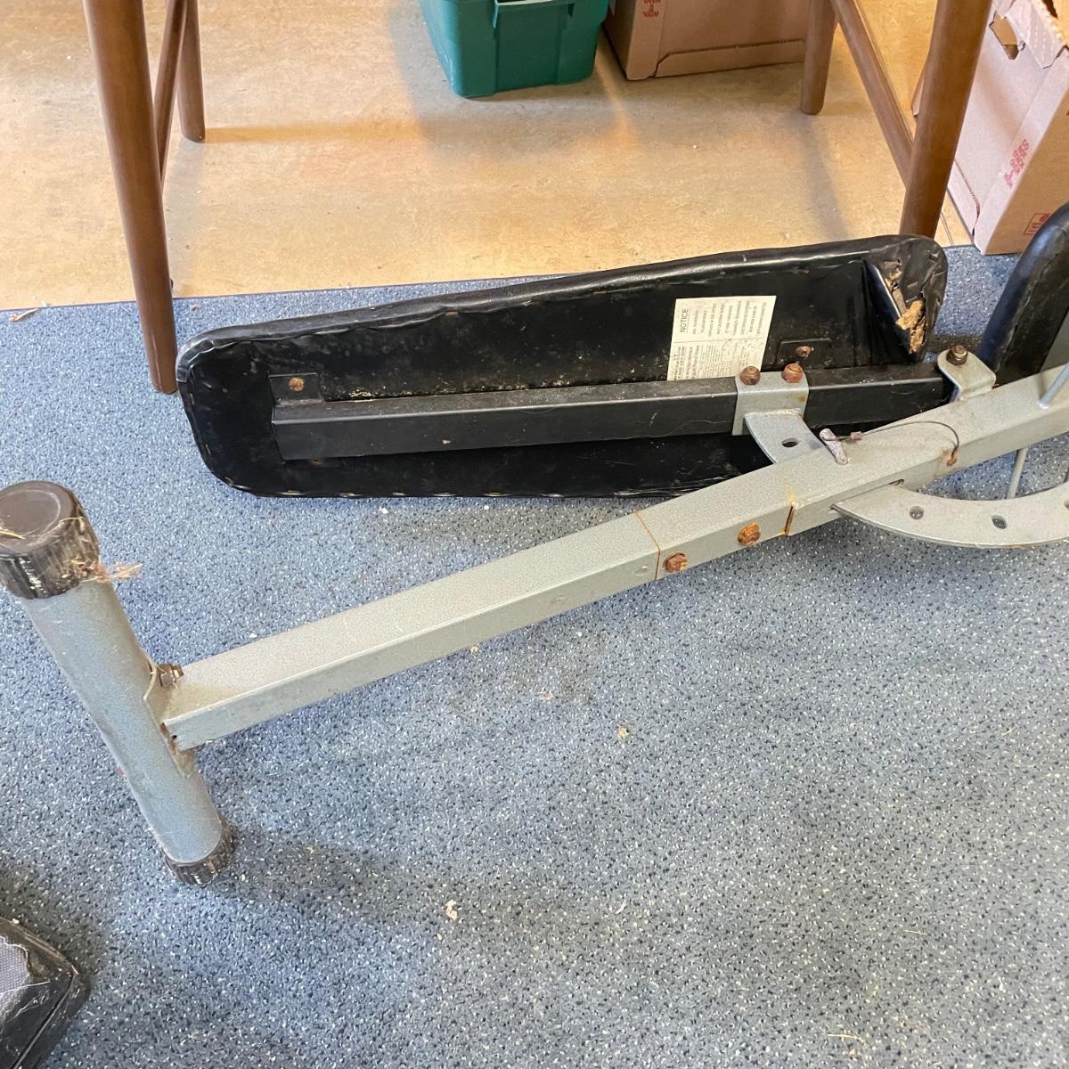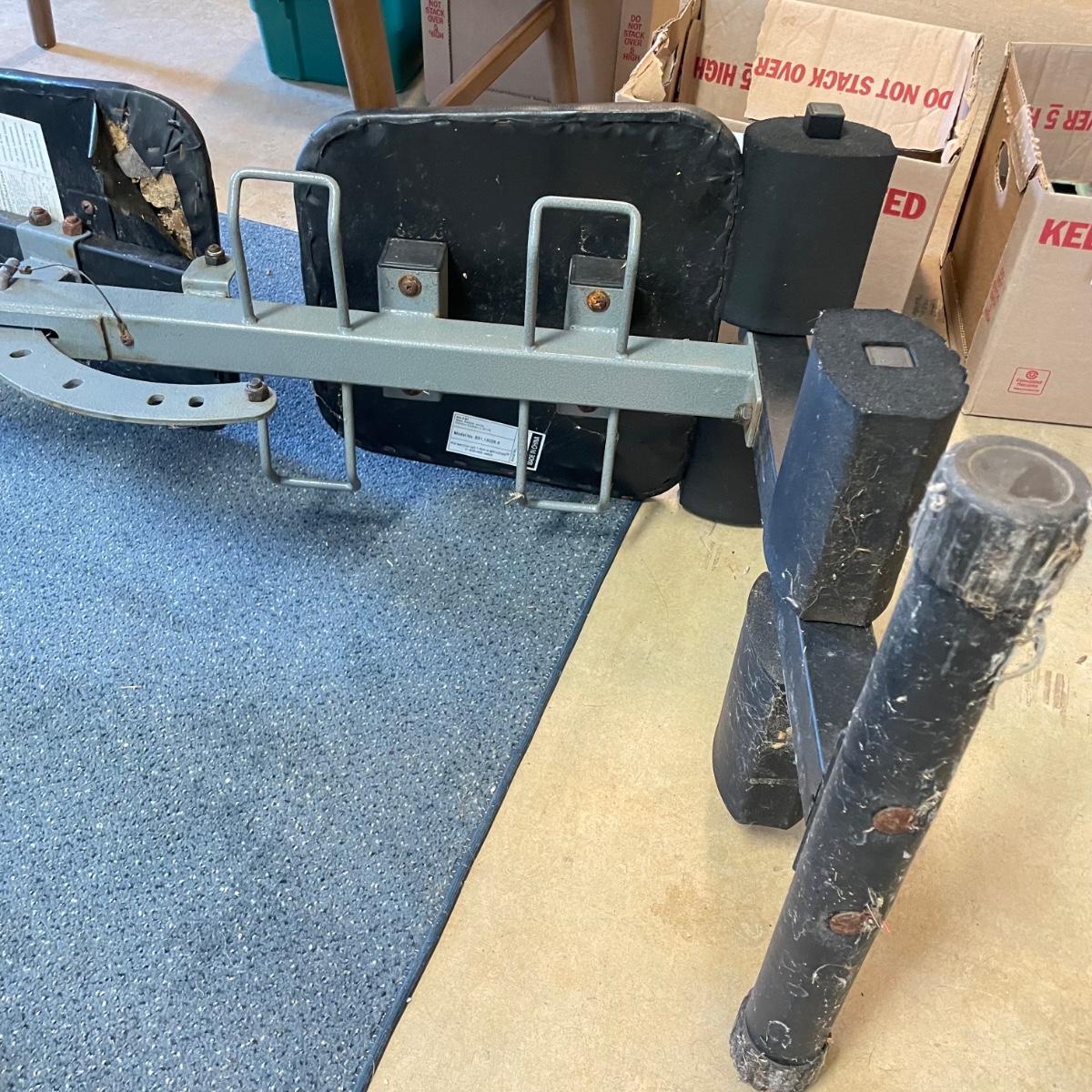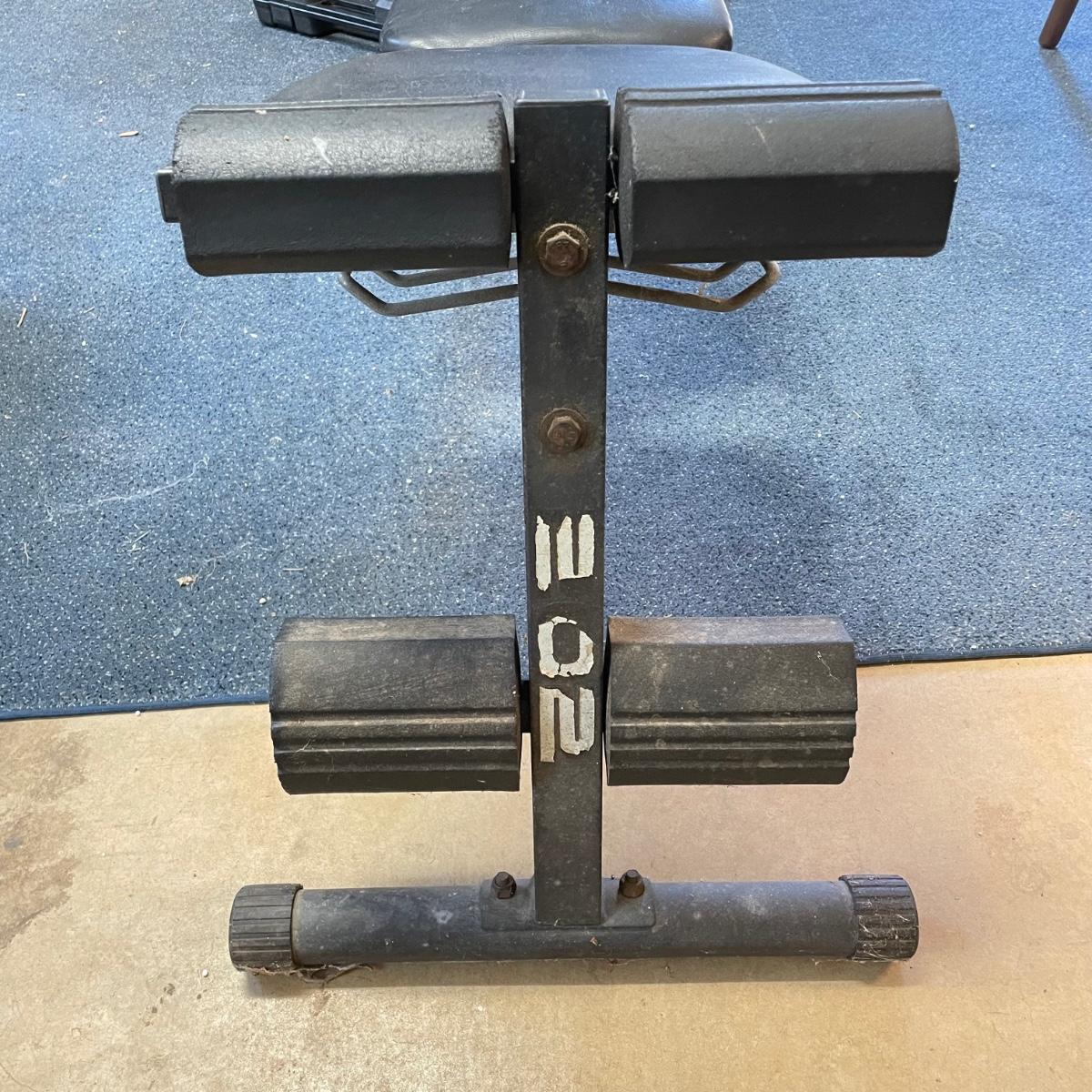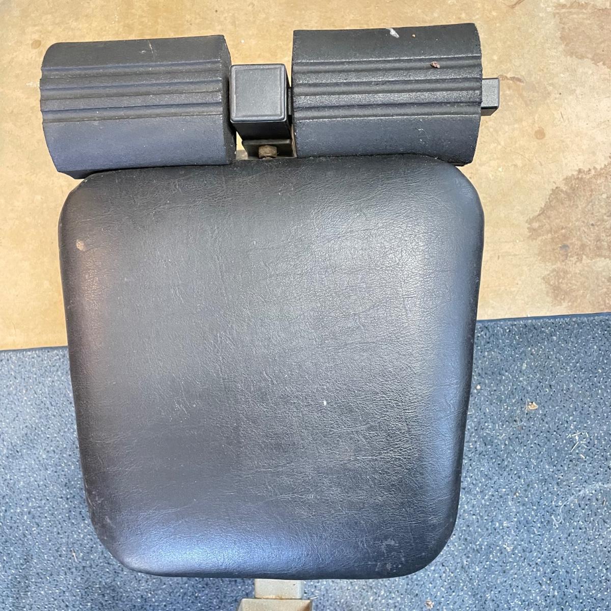 Weider Pro bench has adjustable ergonomic settings, it needs some cleaning but appears to be sturdy. Lot also includes two York dumbbell sets- one has 30lbs of chrome plated plates, the other has 40lbs of cast iron plates. See images. Bench has a metal body with foam supports and a leather-like seat. As shown in photos the bench has some peeling on the underside. It measures 54” x 19” x 22”H. Local pick up only.