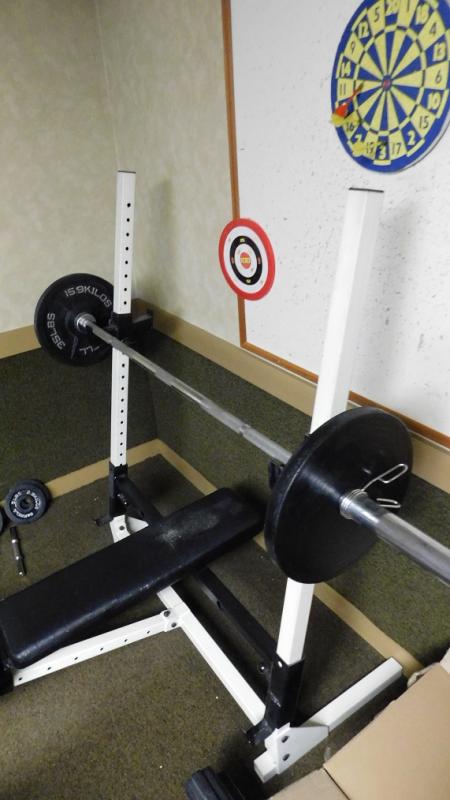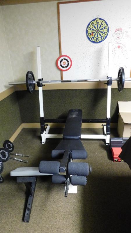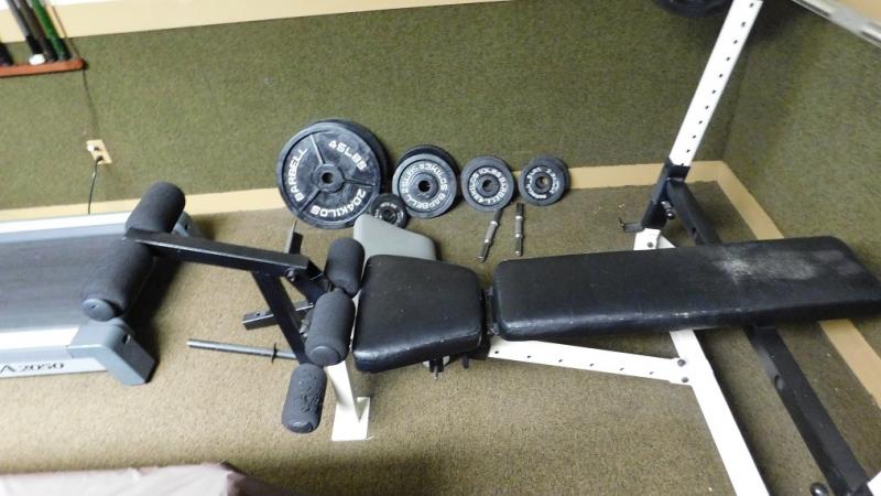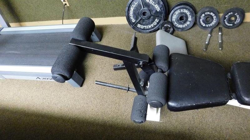 Weight Bench with Press and Leg Lift and Curl Pad has some wear. This item is at separate location but part of same family. Weights not included