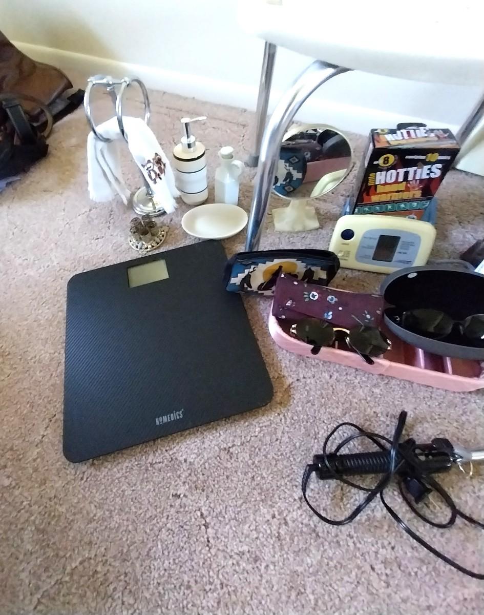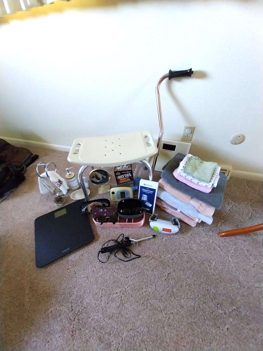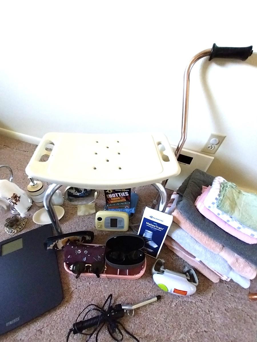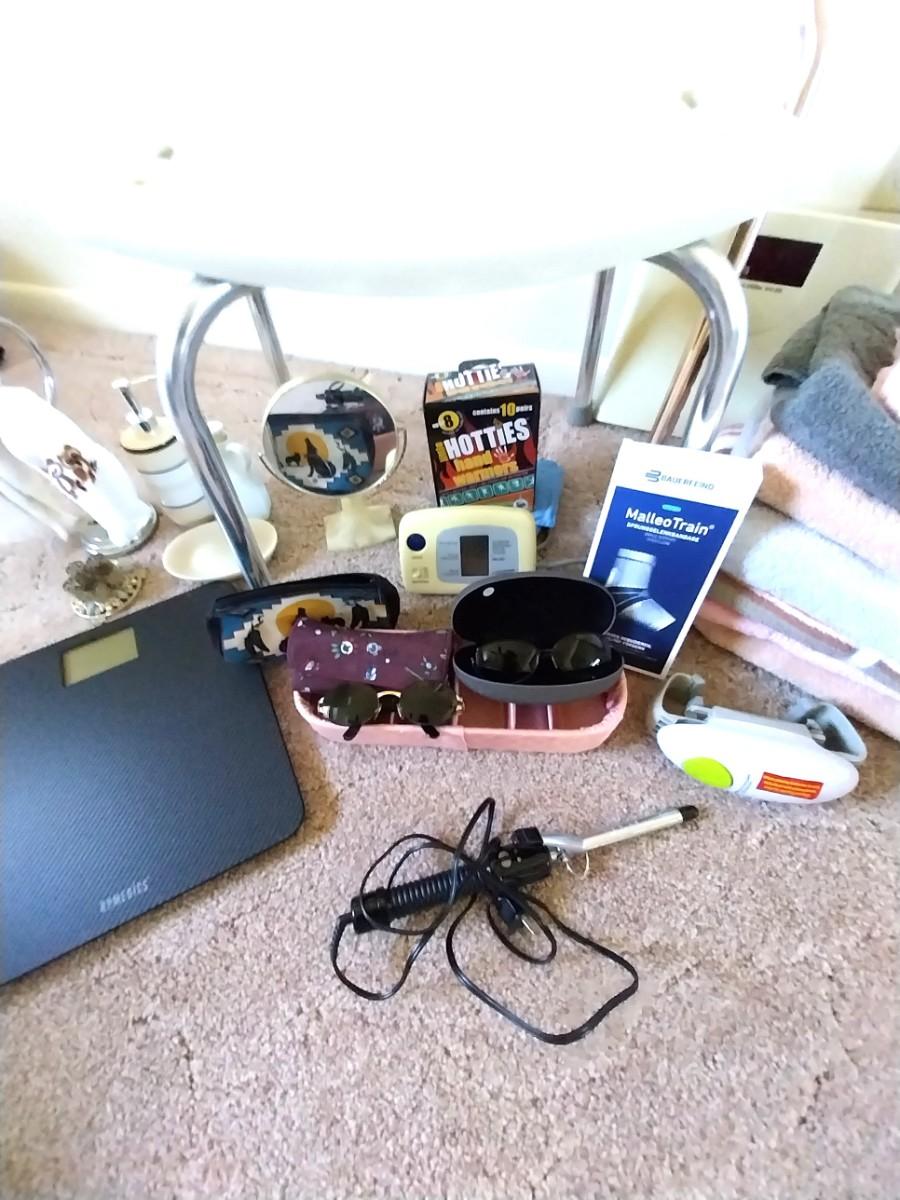 WEIGHT SCALE-TOWELS-SHOWER STOOL-CURLING IRON-AND MUCH MORE