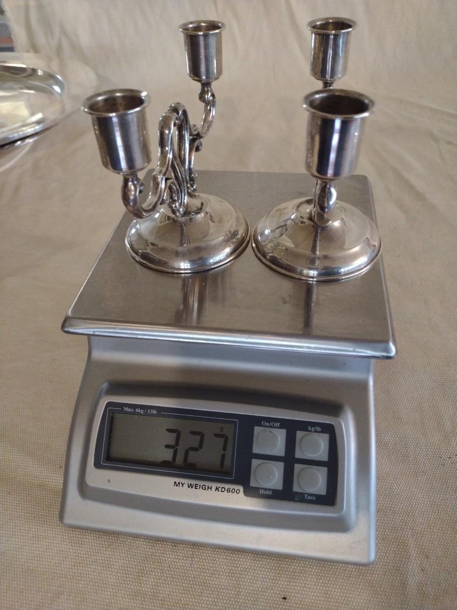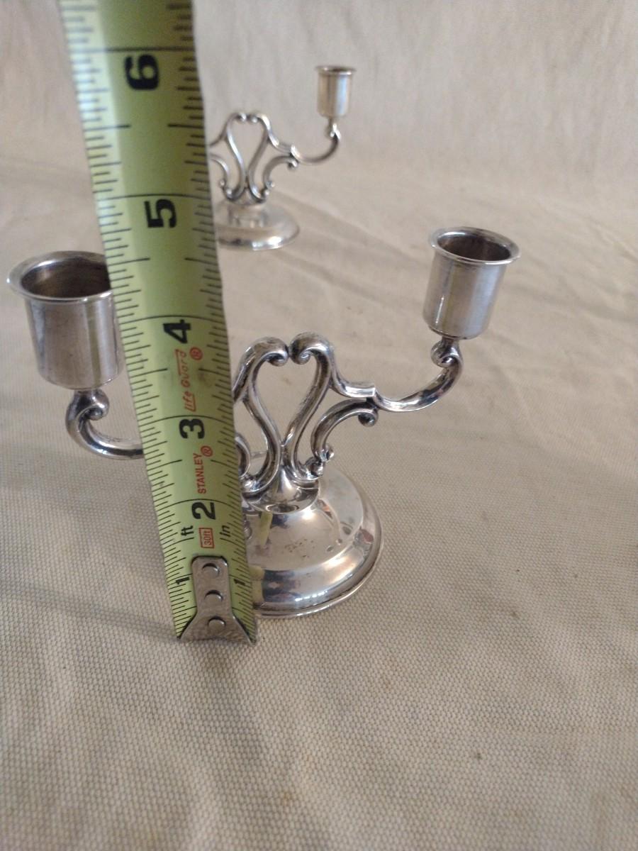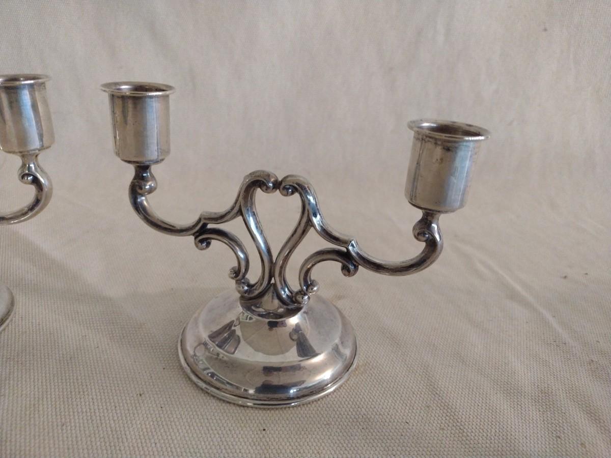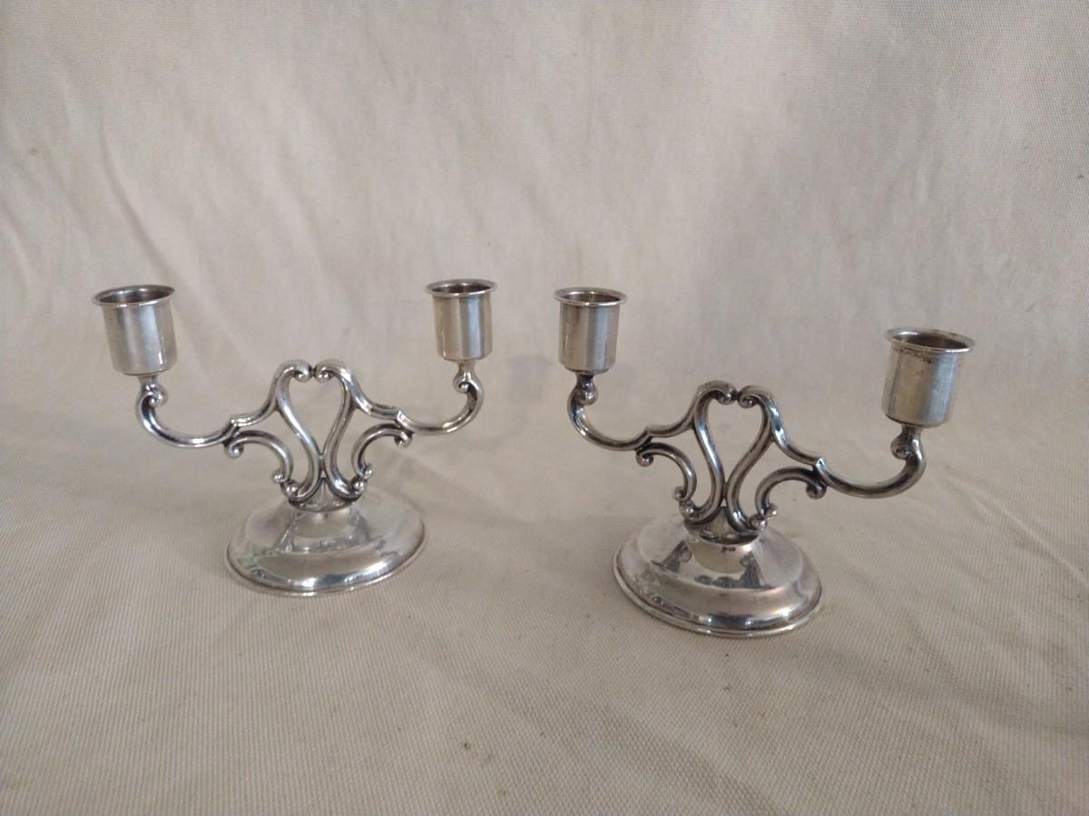 Pair of Sterling Silver Weighted Double Arm Candlesticks