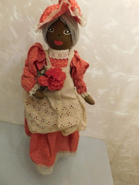 Weighted Folk Art African American Door Stop Red Dress