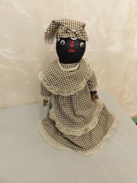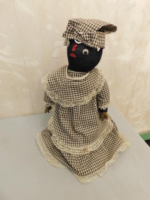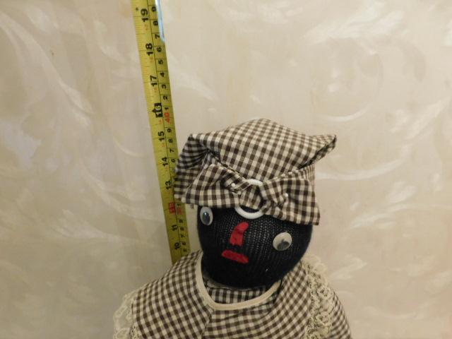Weighted Folk Art African American Door Stop Gray Dress 16"