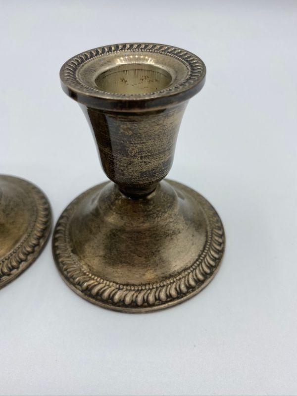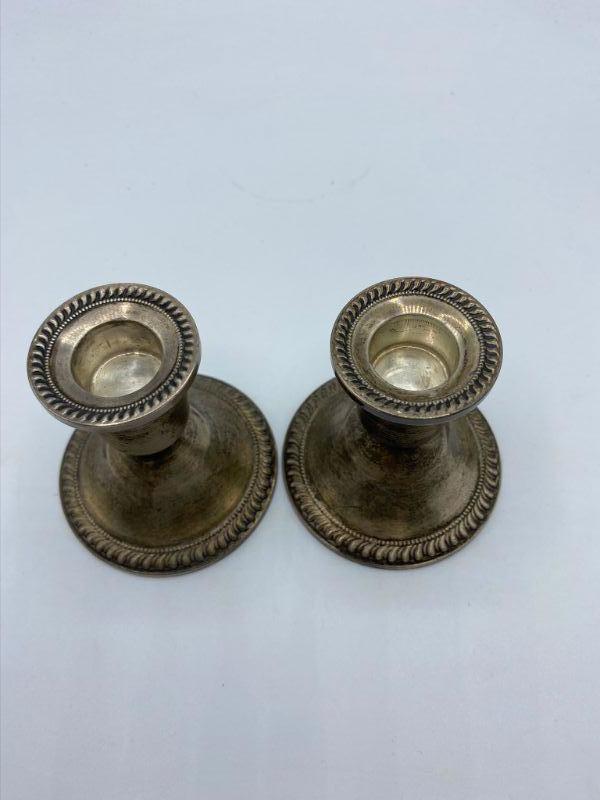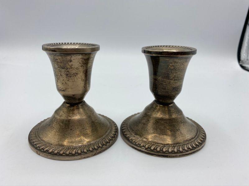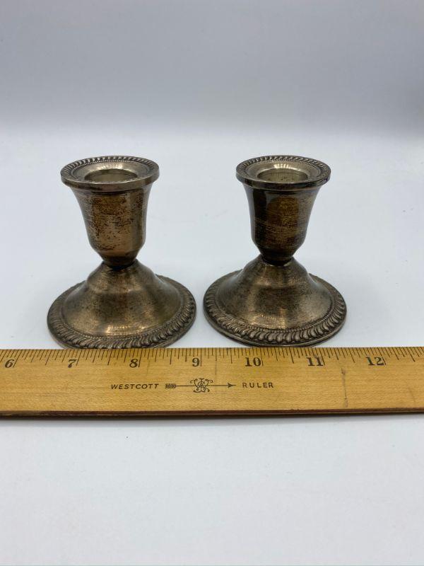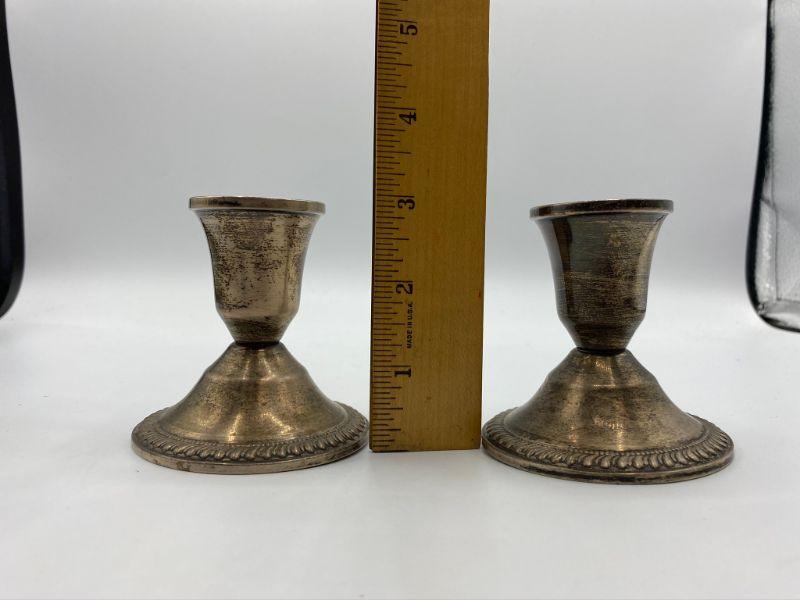 3" Sterling silver candle stick holders. Weighted bottom. No noticeable dings or scratches, need to be polished. Stamped on the bottom.
