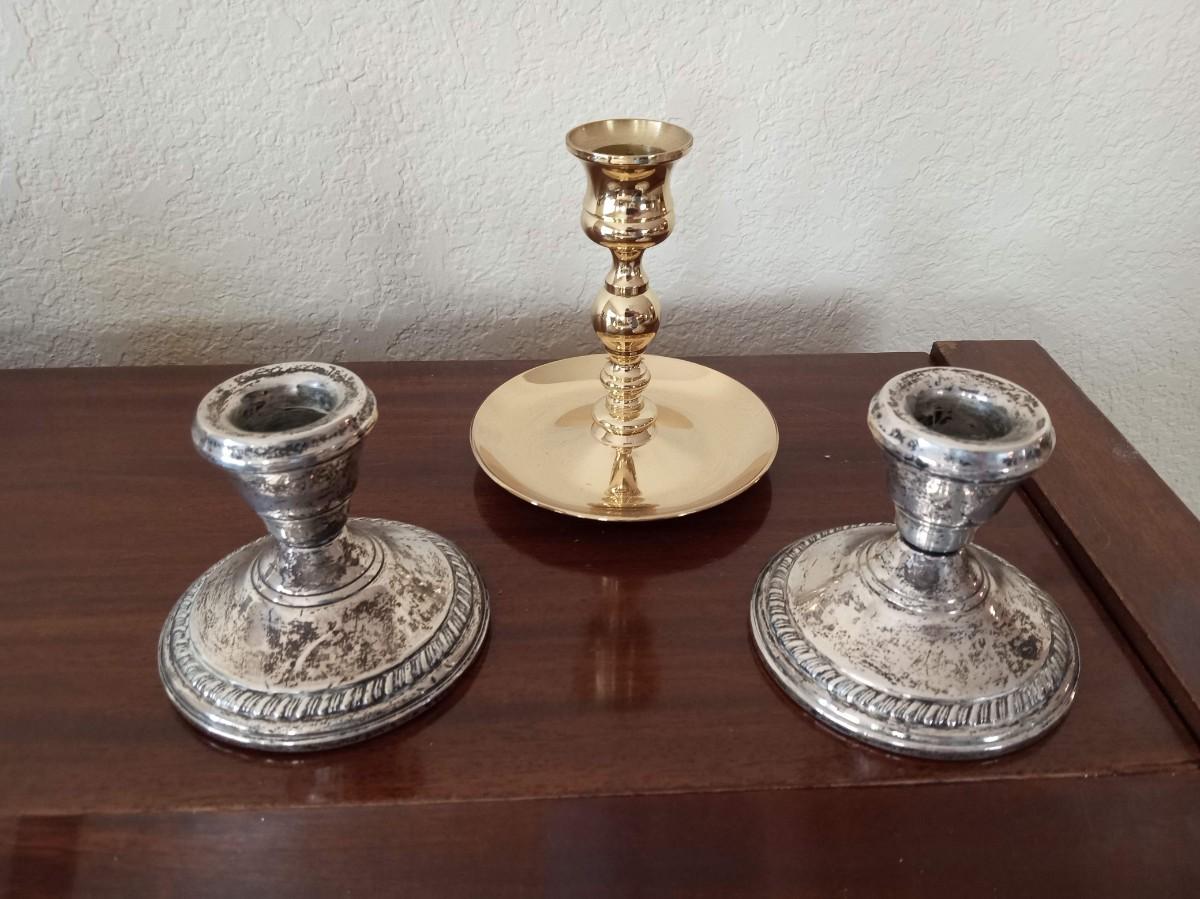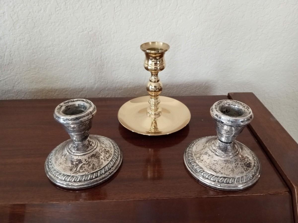 STERLING CANDLE HOLDERS ARE APPROX 3" TALL