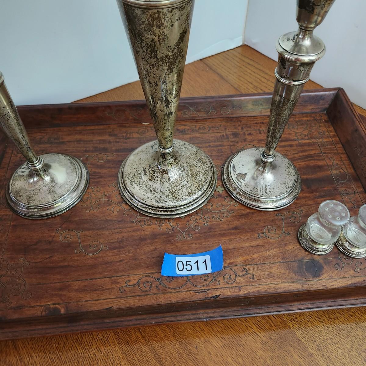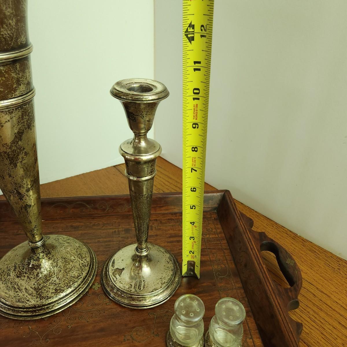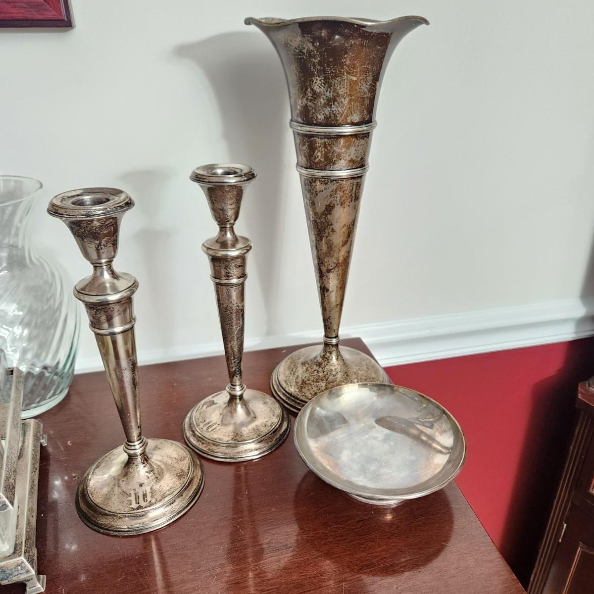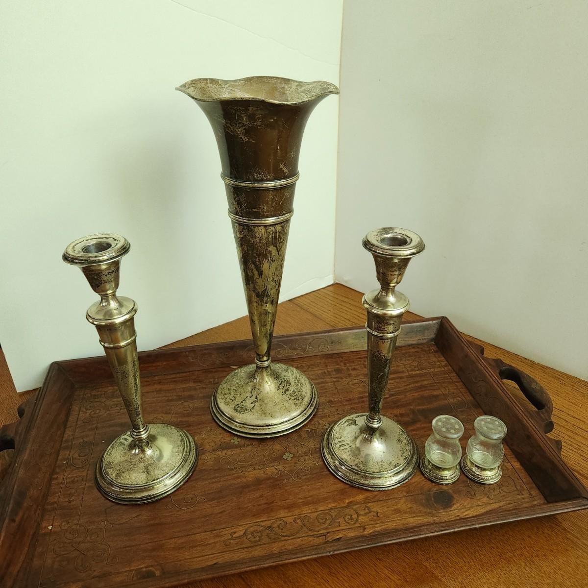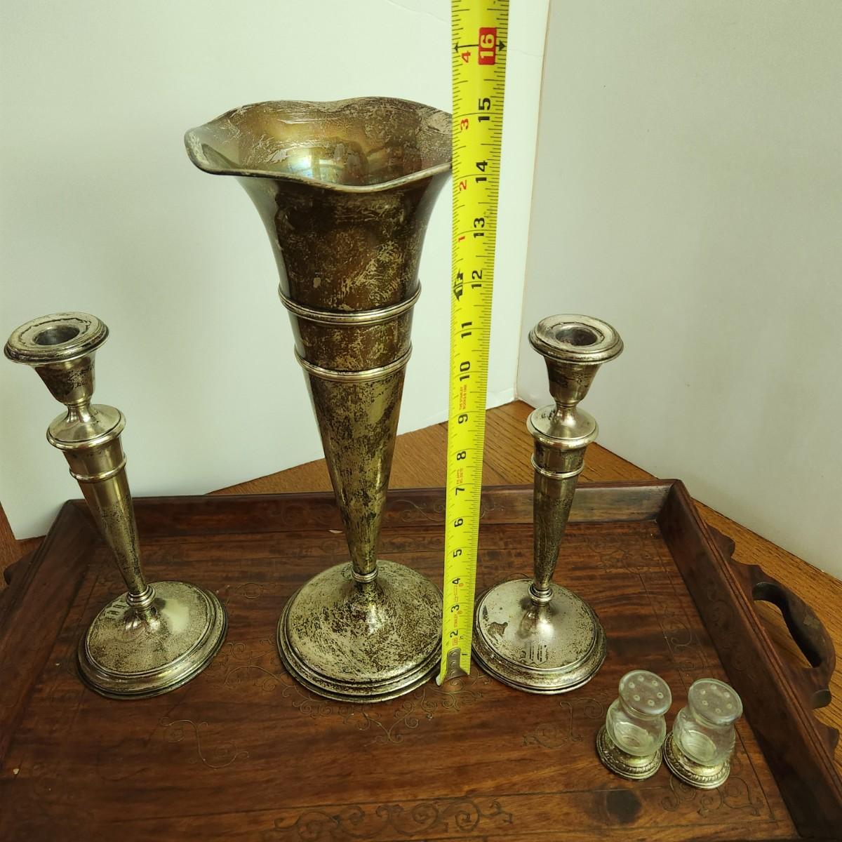 Weighted Sterling Silver Candle Sticks, Vase, Bowl ,Salt Pepper Shakers