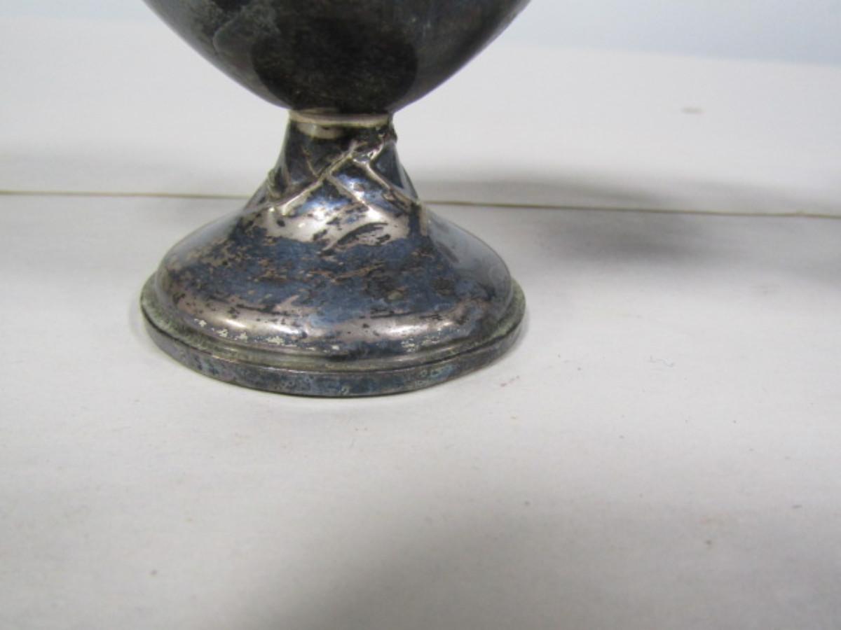 Weighted Sterling Silver Creamer and Sugar Bowl. Heavily tarnished and in need of cleaning. Please see all pictures- some visible rippling of sterling sheeting.
