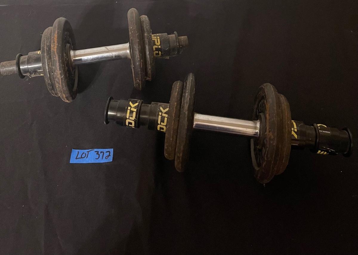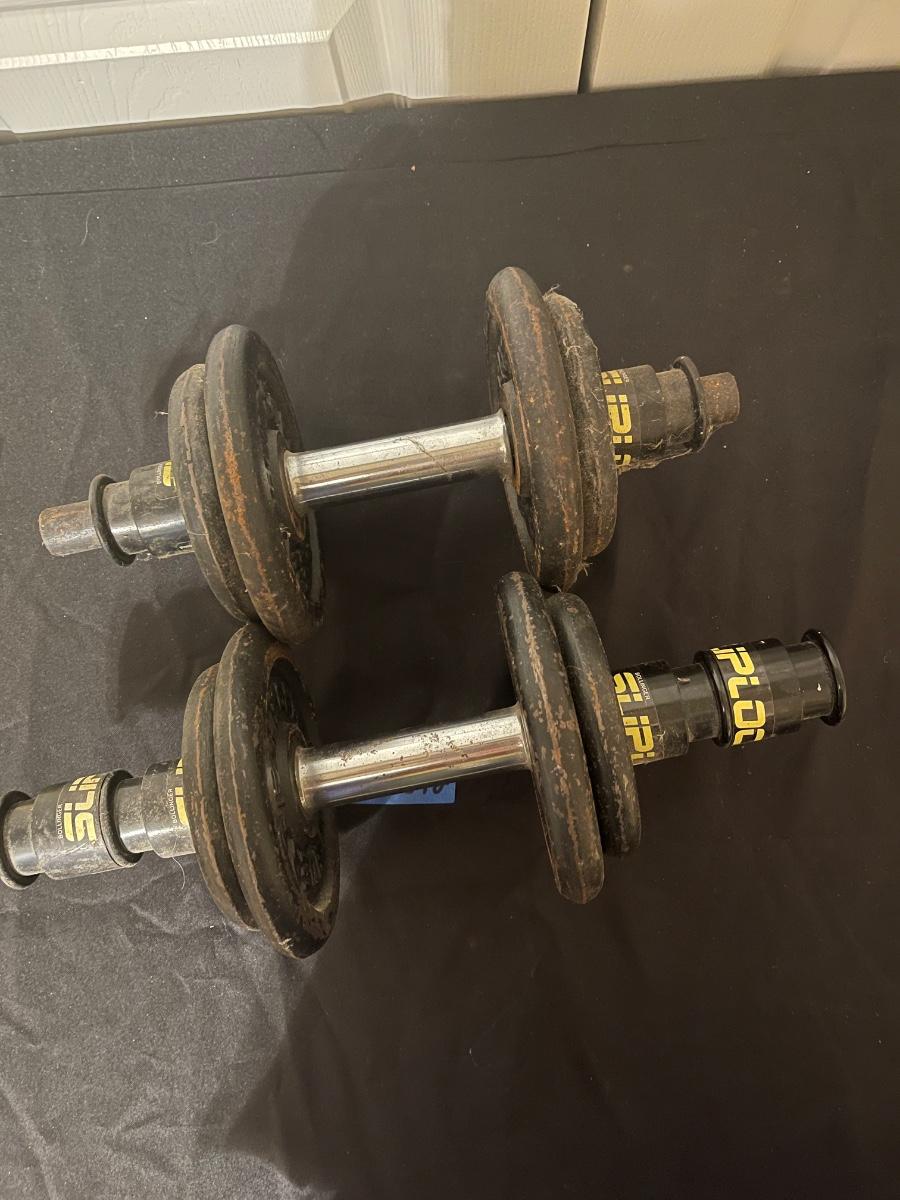 Pair of Bollinger Sliplock 16lb weight, each weight (2-5 lbs); wieghts and 2-3lbs weights - weighted bar dumbells